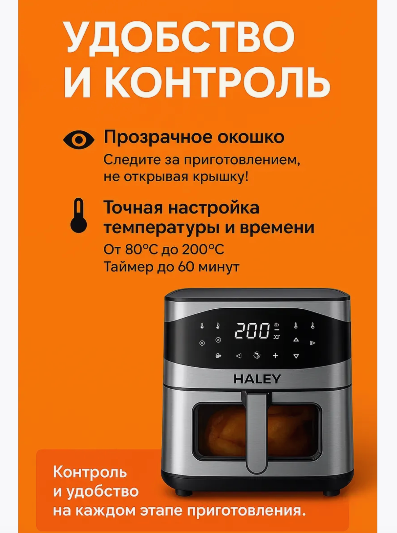 10 цен на Аэрогриль Haley HY-2503, серебристый, 10л, электронное управление, 2000Вт