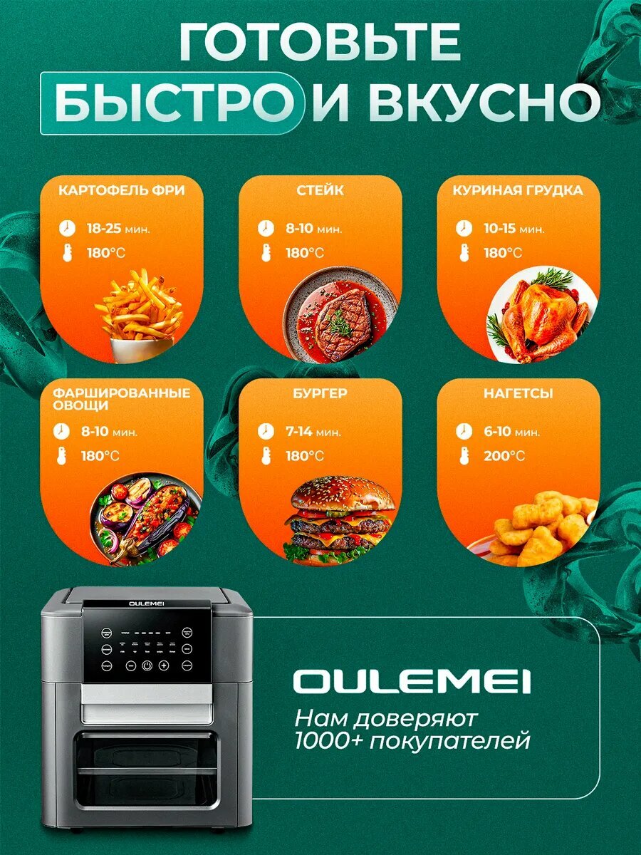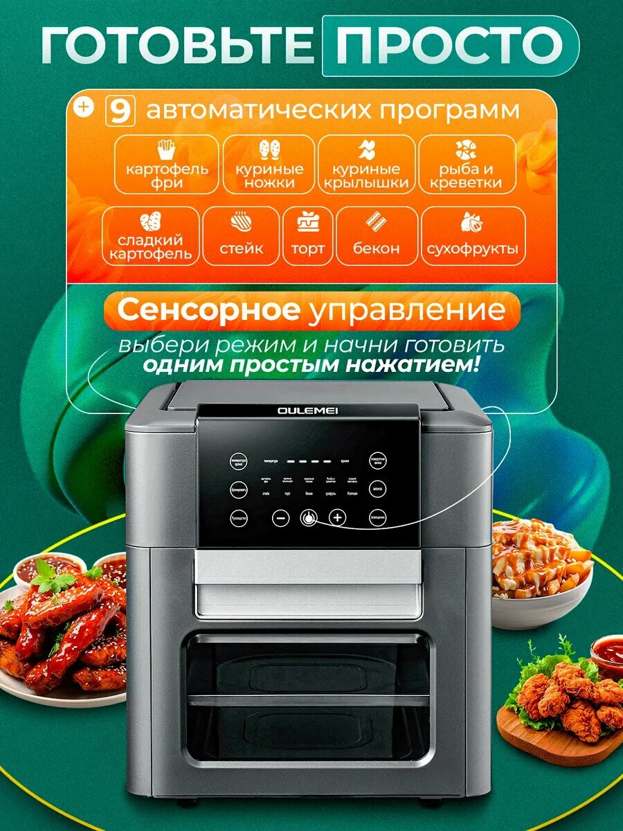 Аэрогриль электрический, электропечь с сенсорным управлением, 1400 Вт, Oulemei