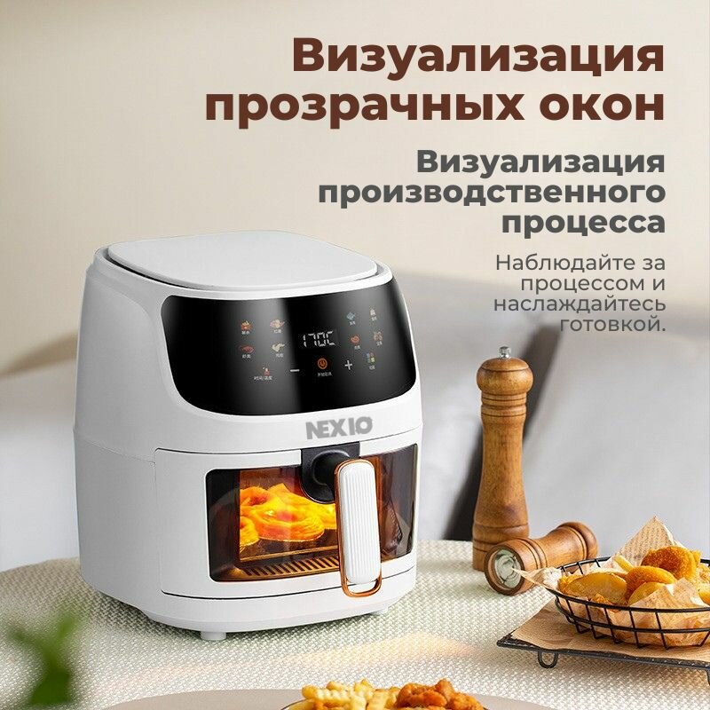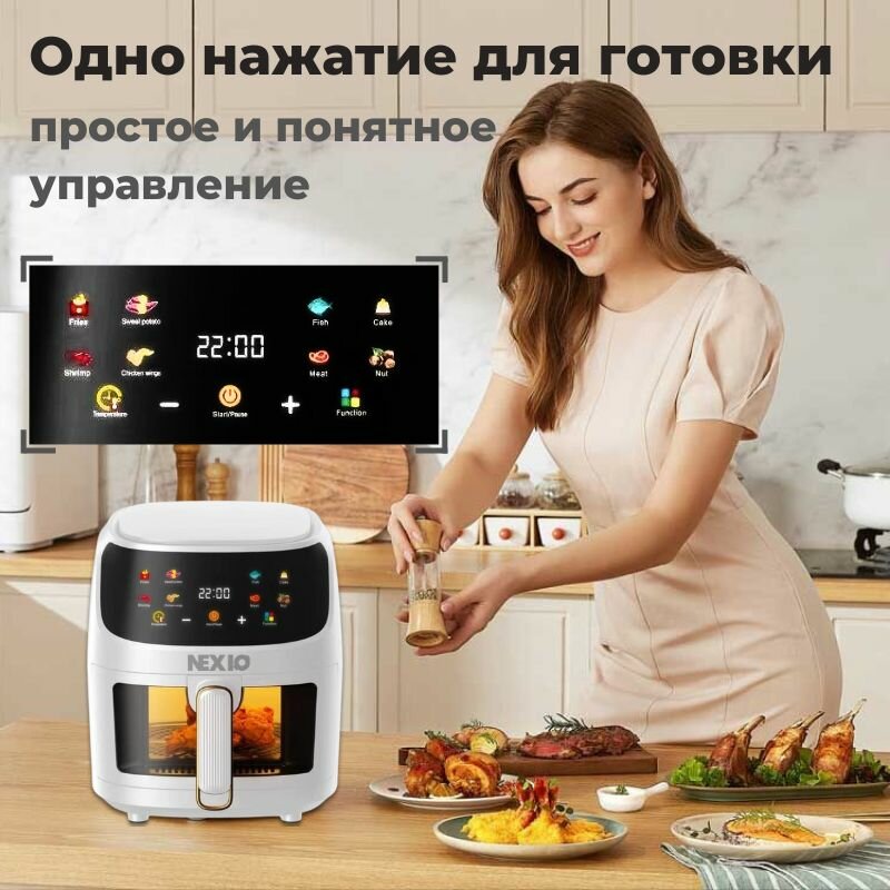 10 цен на Аэрогриль, 8 литров, 2400 Вт, 8 режимов, прозрачное окно, сенсорный экран.