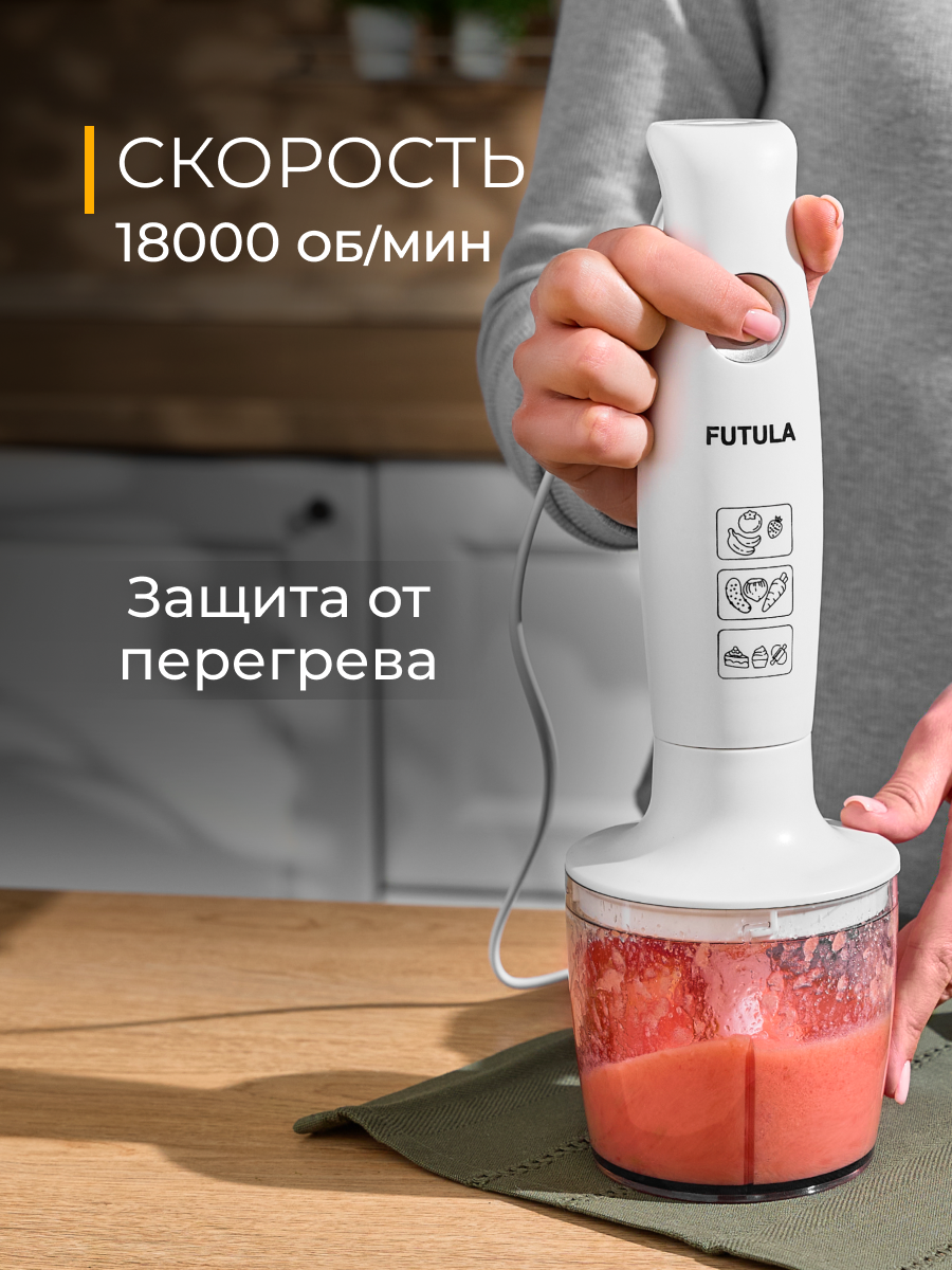 Отзывы на Блендер погружной Futula HB6 белый, мощность 800Вт, 1 скорость, с измельчителем и венчиком