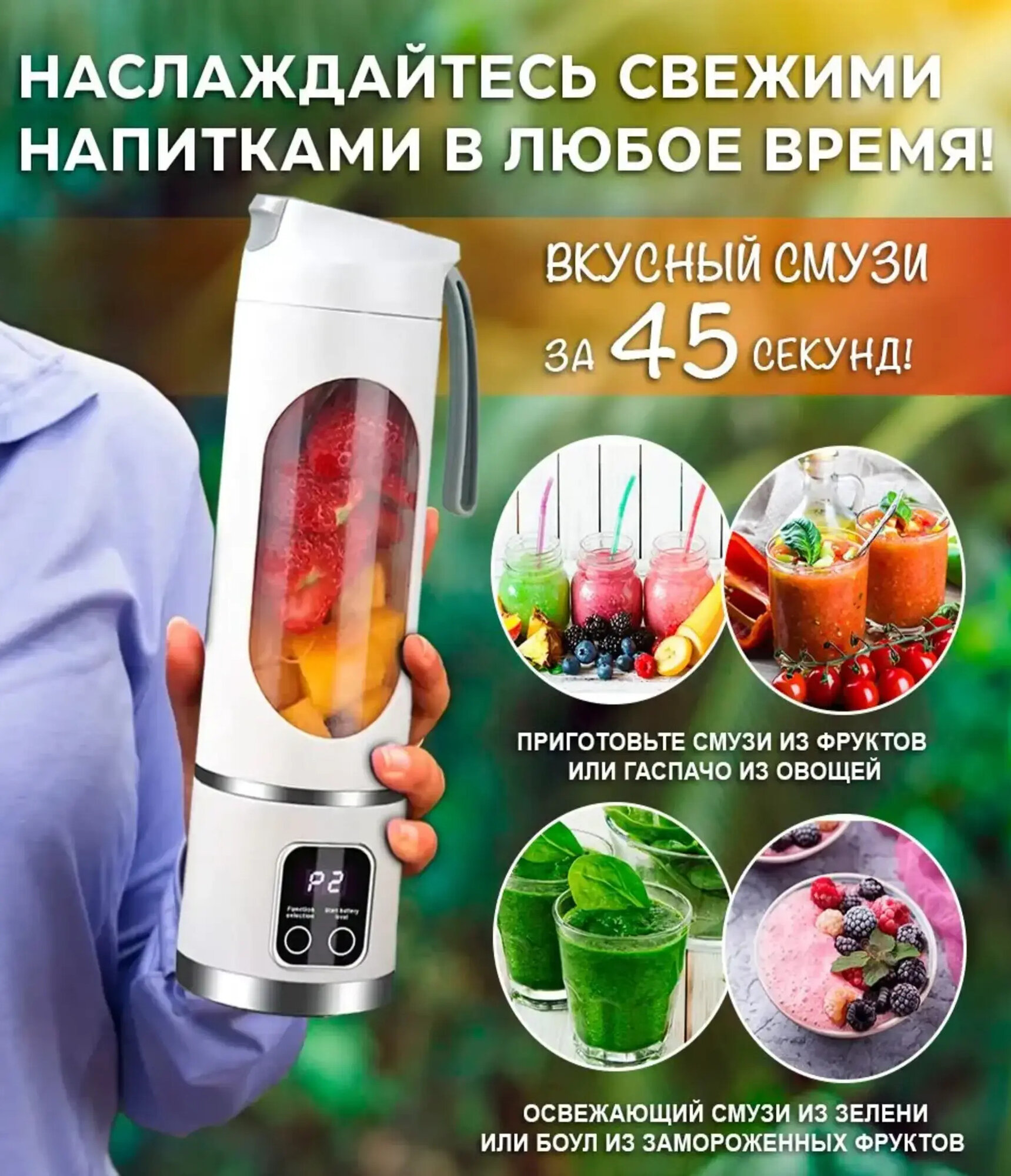 Портативный блендер для смузи и коктейлей 3 скорости с дисплеем информация: