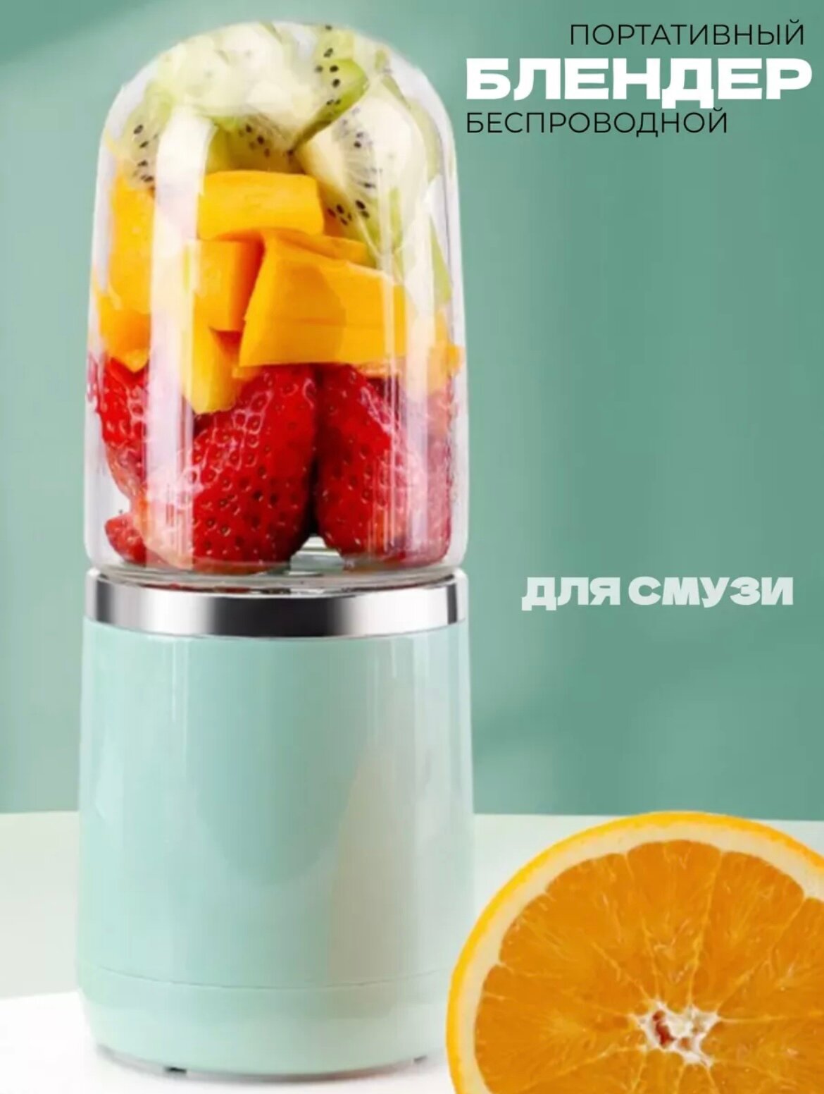 Отзывы на Портативный блендер для смузи и коктейлей, беспроводной, бирюзовый