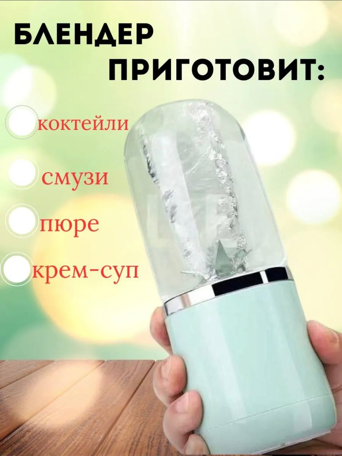Портативный блендер для смузи и коктейлей, беспроводной, бирюзовый информация: