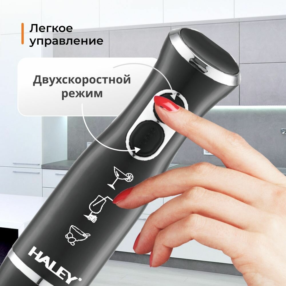 10 цен на Многофункциональный блендер погружной HALEY-1118 с регулятором мощности, турборежим 2 скоростями, 1200 Вт, черный, серый металлик