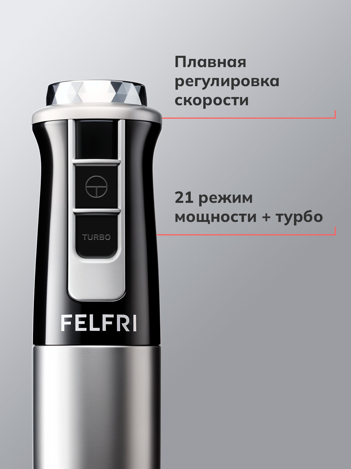 Погружной блендер Felfri, 1500Вт, 3 в 1, черный, серебристый, пластик 4 615 ₽