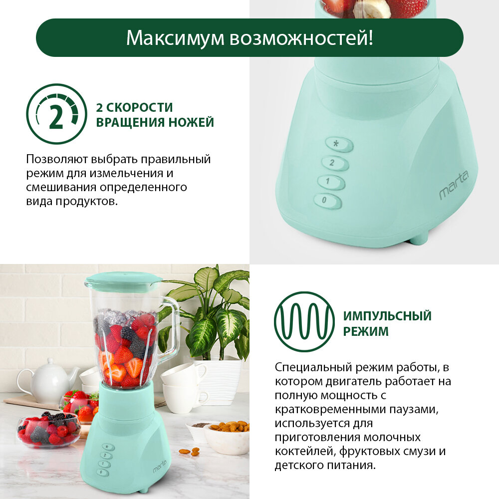 Блендер MARTA MT-KP1595A, мощность 1200Вт, для приготовления смузи, супов-пюре, коктейлей
