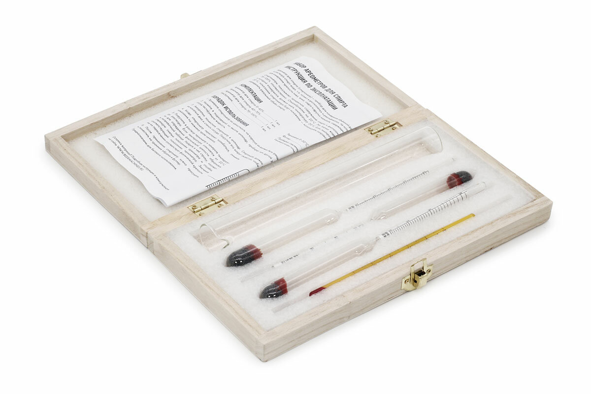 10 цен на Набор из трёх спиртометров, термометра и цилиндра «Hoppy Brew» в деревянном футляре (кейсе)