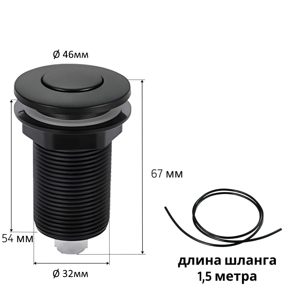 Пневматическая кнопка для измельчителя пищевых с пневмошлангом отходов длинная черная матовая D 32мм