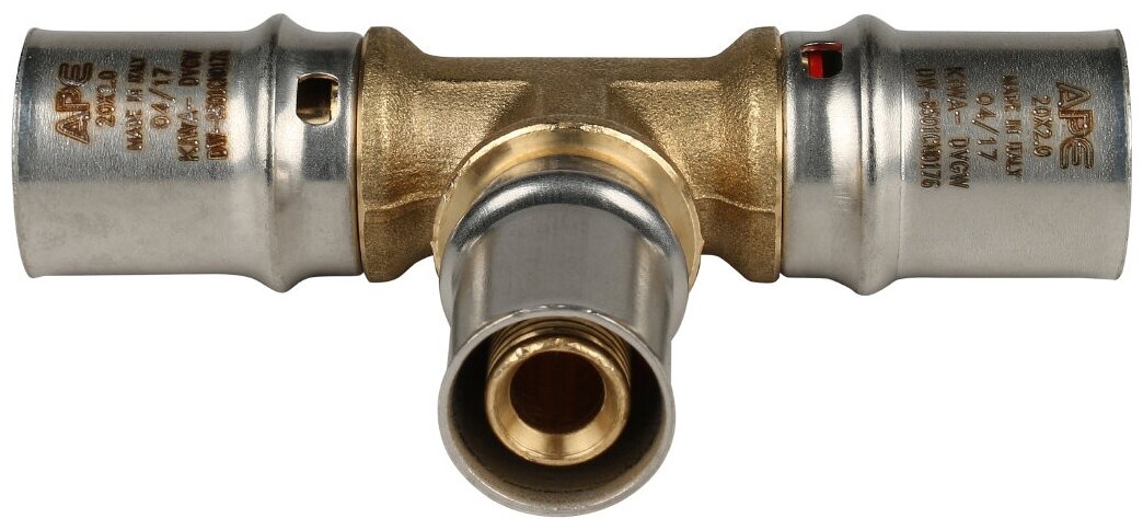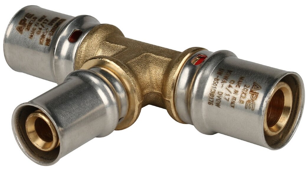 Тройник переходной 20х16х20 для металлопластиковых труб прессовой ФУМ лента 10м
