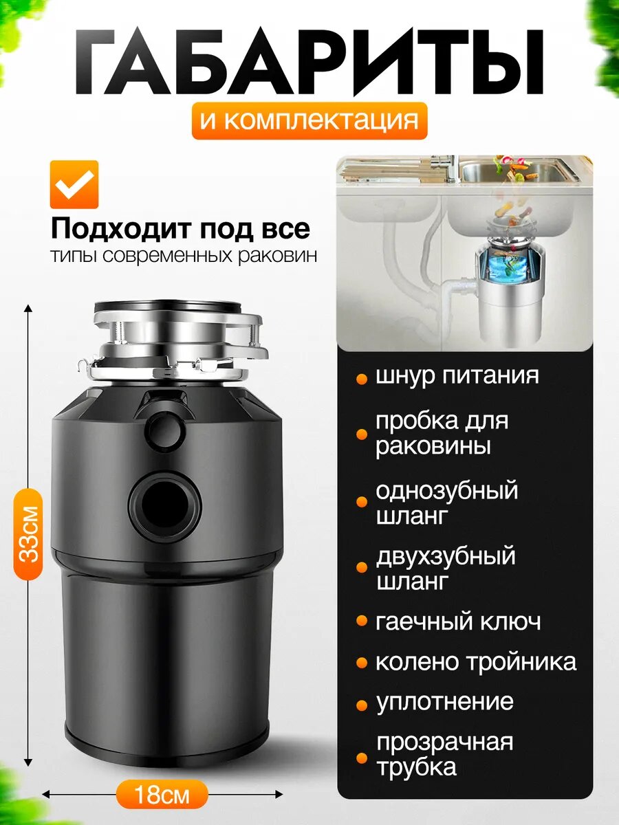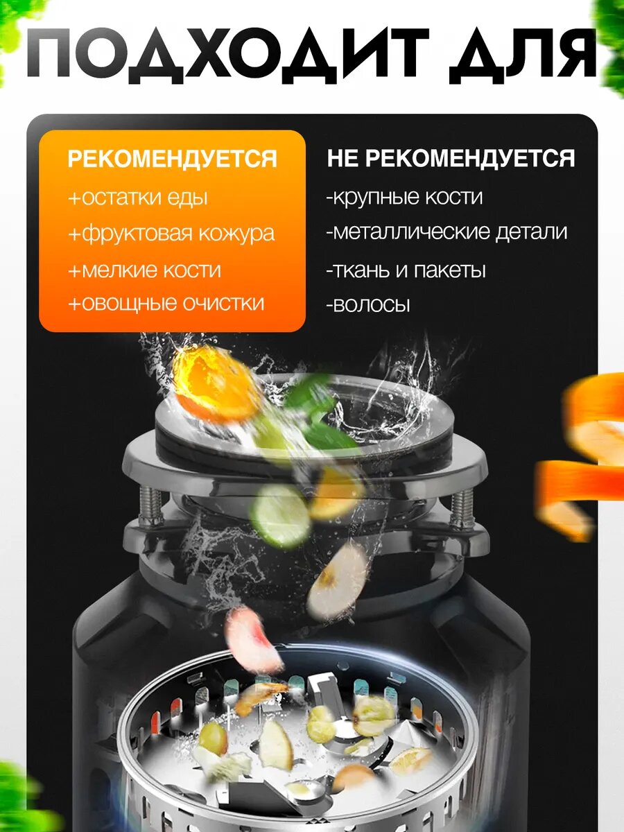 Измельчитель бытовых пищевых отходов в раковину, нержавеющая сталь информация: