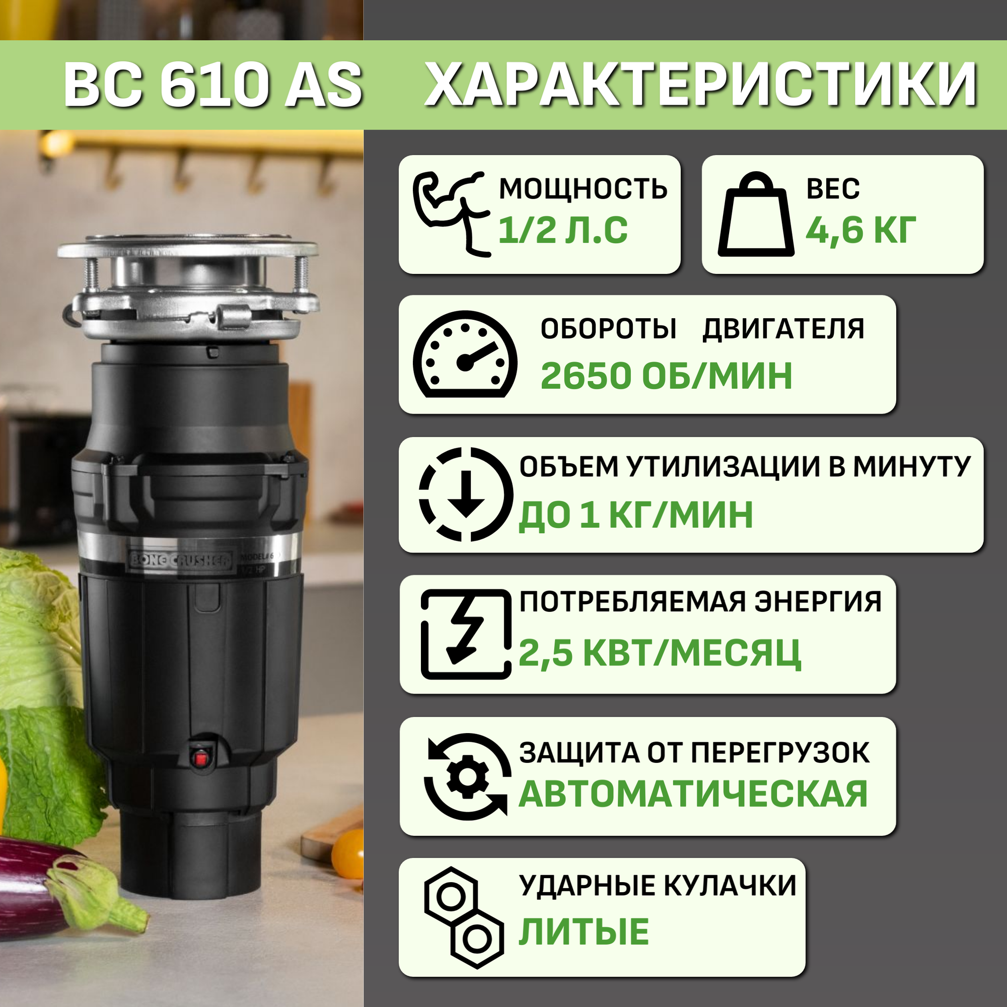 Измельчитель пищевых отходов Bone Crusher BC 610 AS. информация: