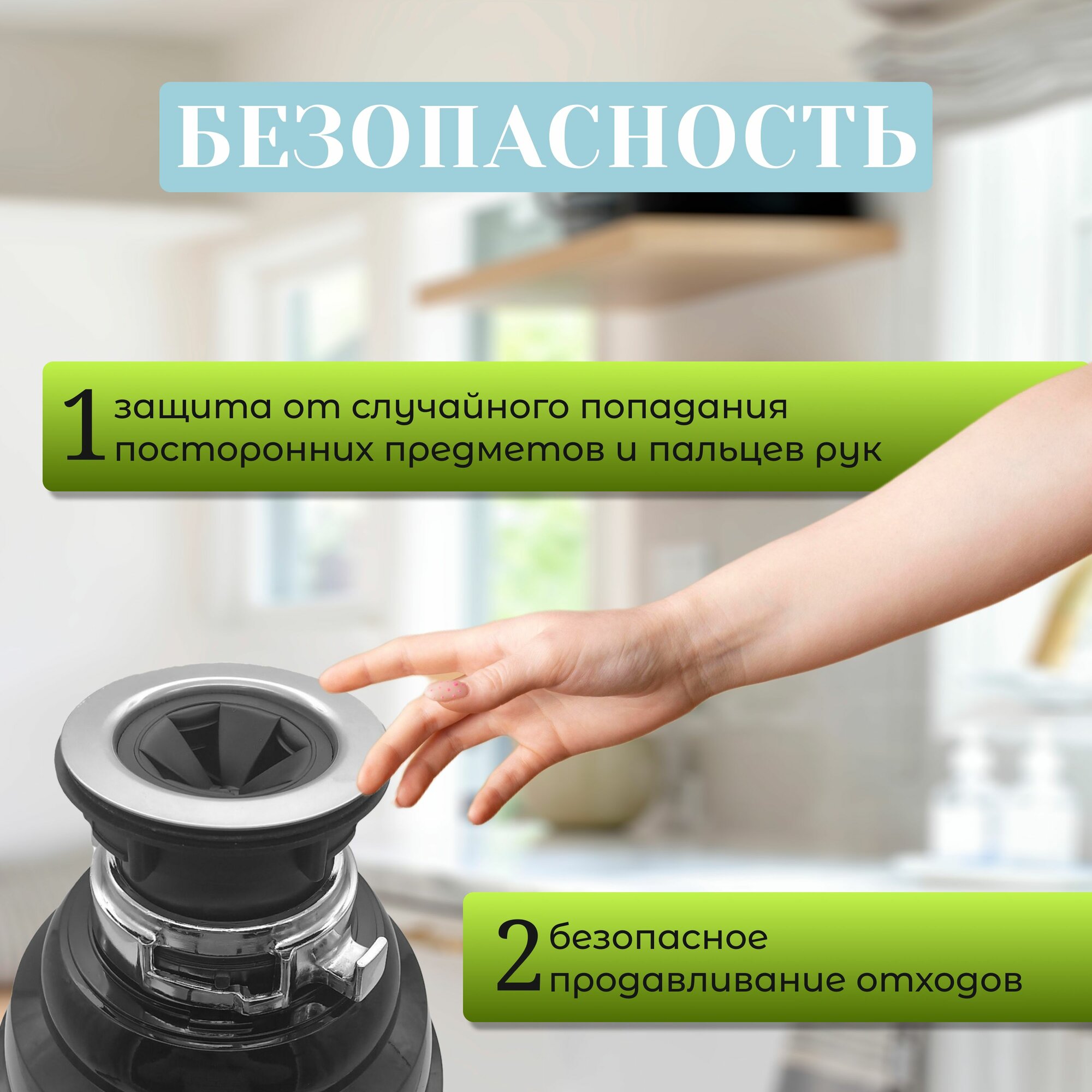 Измельчитель пищевых бытовых отходов AIRHOT FWD-550. 0.550 кВт, 3600 об/мин, 3 стадии перемолки