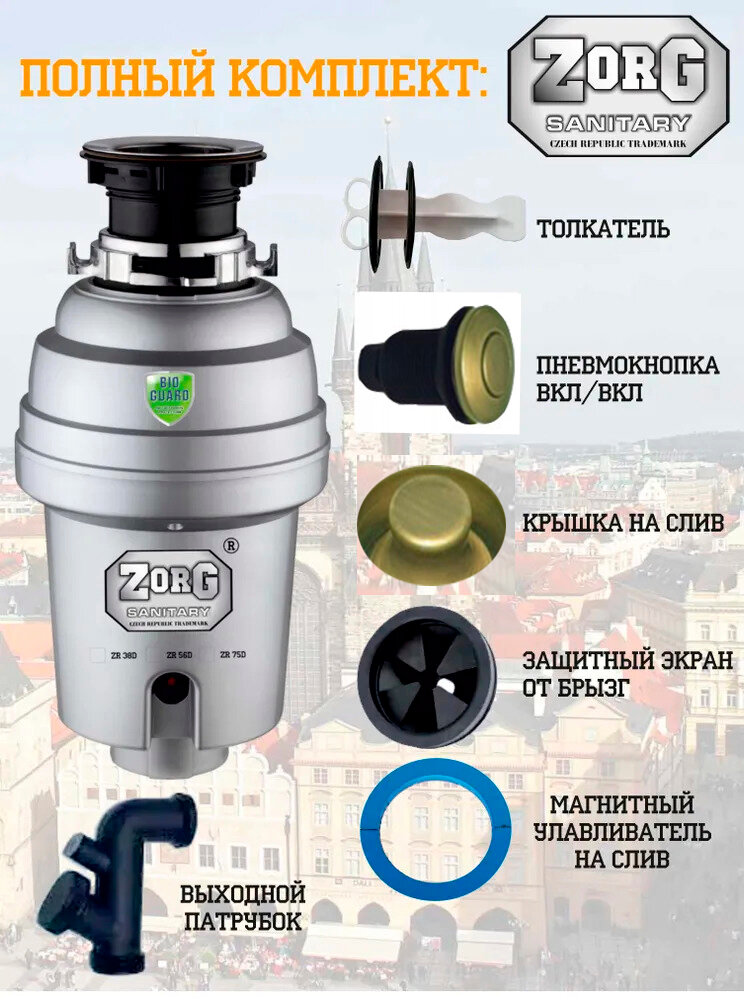 Измельчитель пищевых отходов с магнитным улавливателем ZorG ZR-56 D BRONZE в цвете бронза, 550Вт информация: