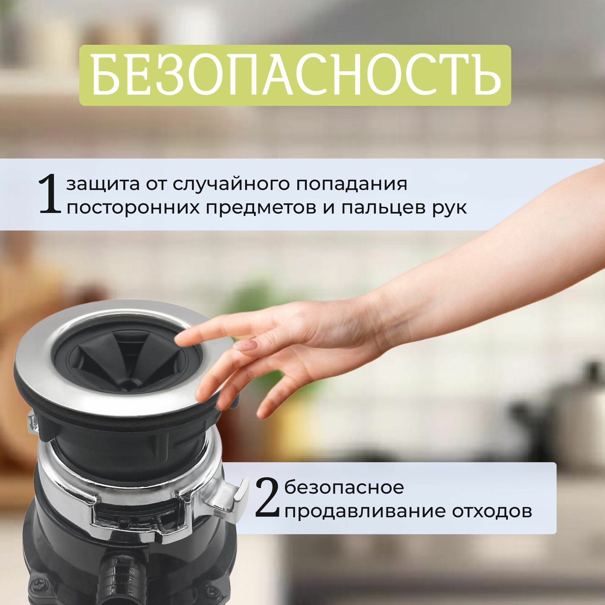 Измельчитель пищевых бытовых отходов AIRHOT FWD-550. 0.550 кВт, 3600 об/мин, 3 стадии перемолки