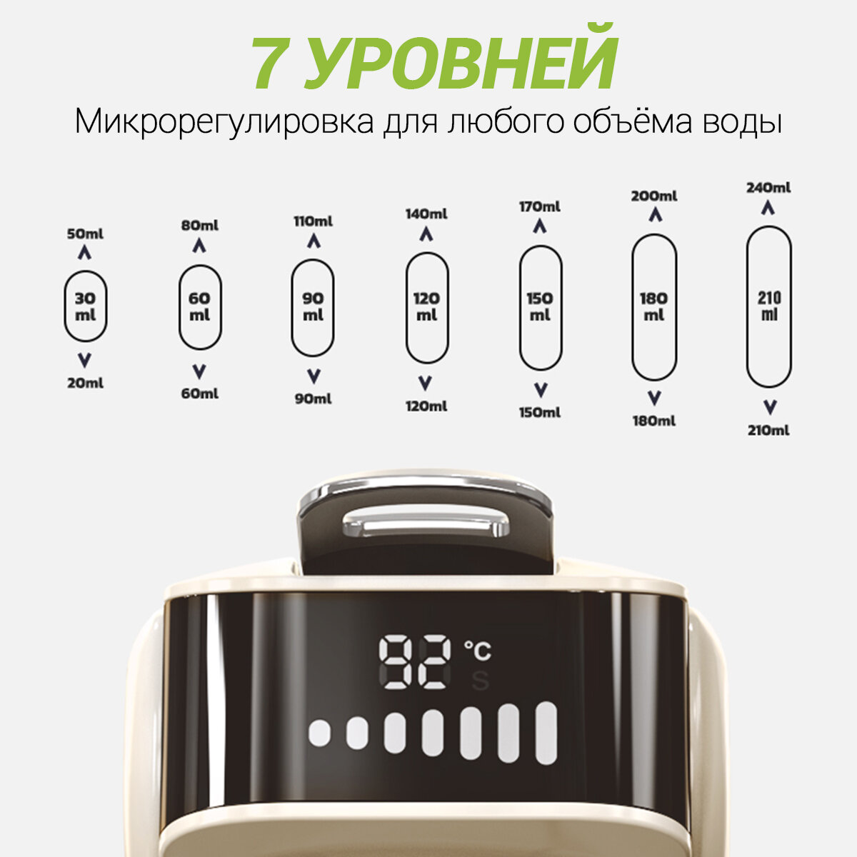 | Настройки | крепость кофе / объем порции горячей воды / температура кофе |