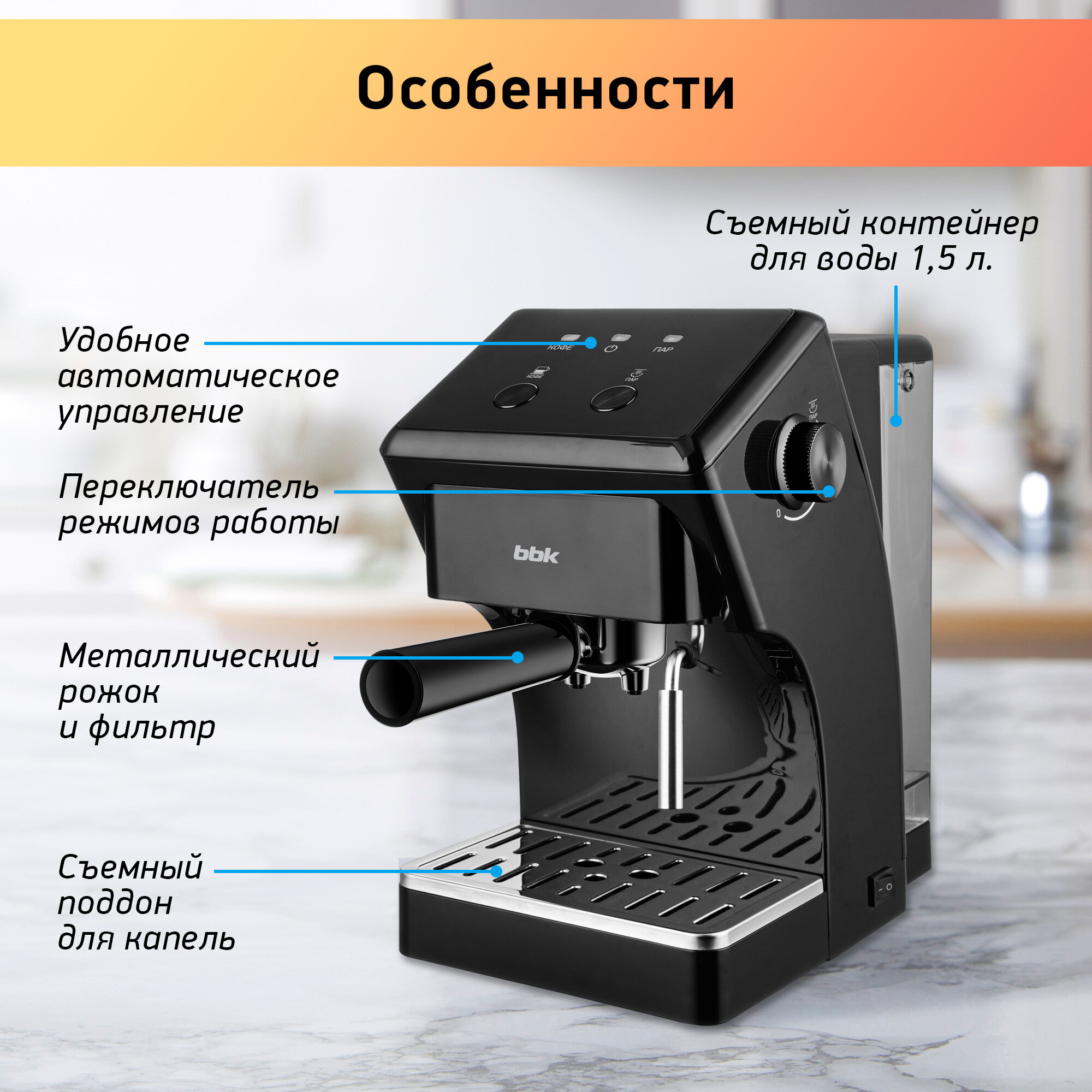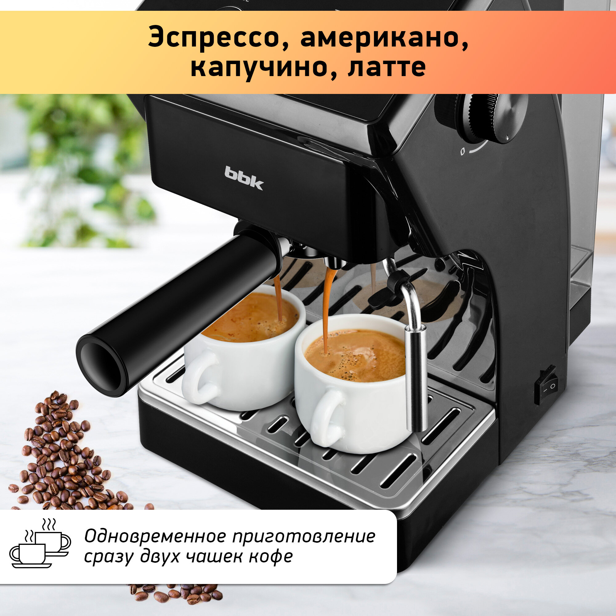 10 цен на Кофеварка рожковая BBK BCM1502, черный, с капучинатором, 15Бар