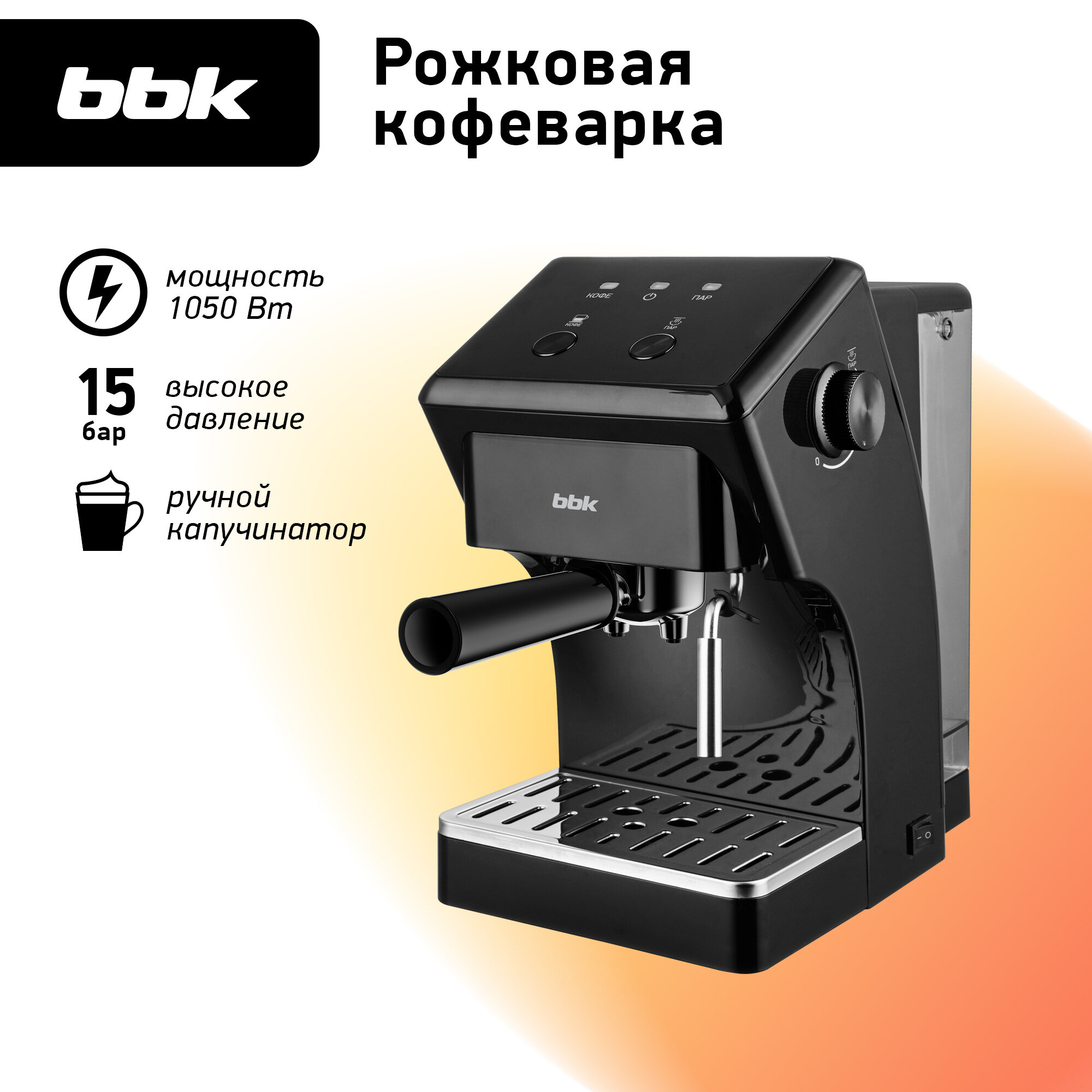 Кофеварка рожковая BBK BCM1502, черный, с капучинатором, 15Бар информация: