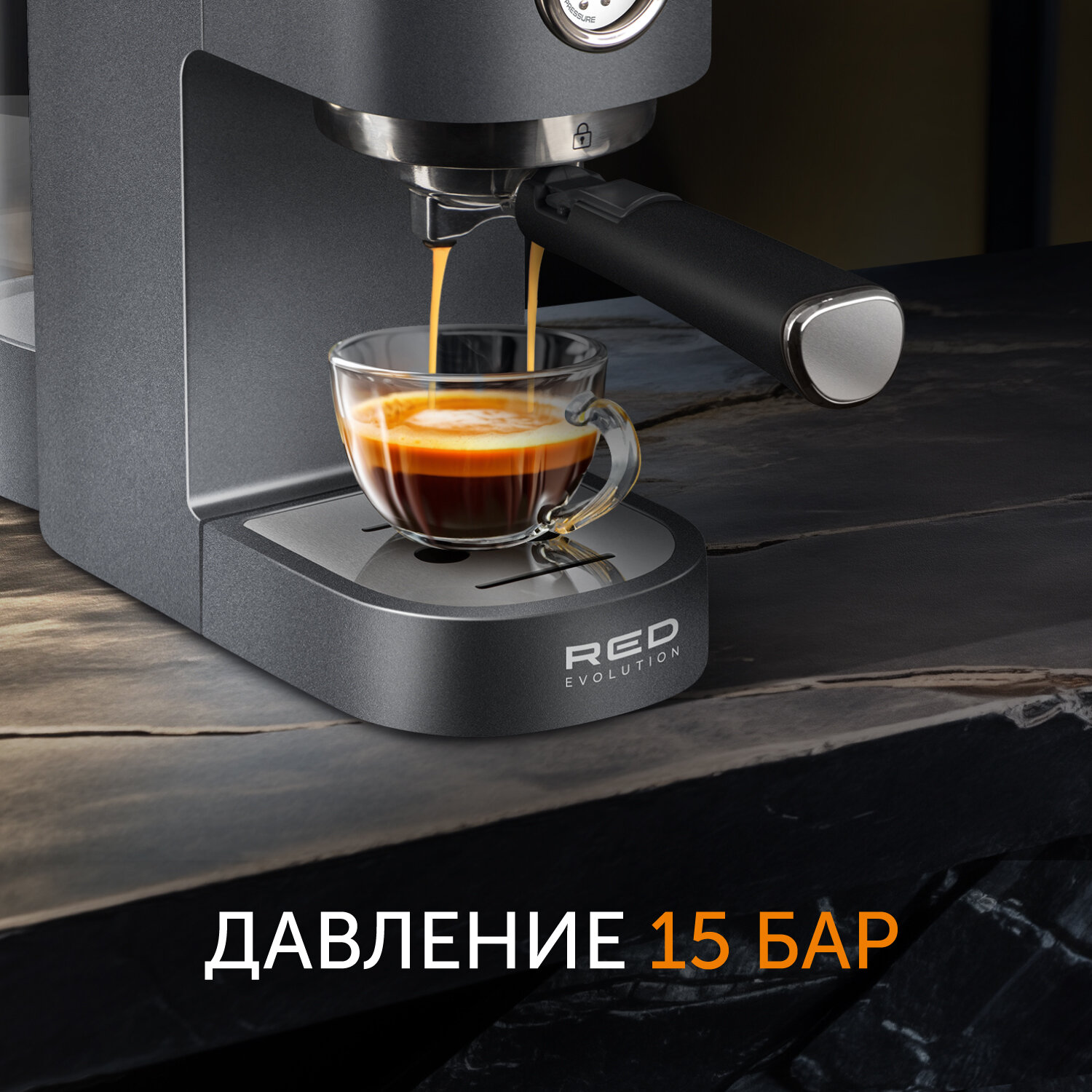 10 цен на Кофеварка рожкового типа RED evolution RCM-1532 (кофе - молотый, 1300 Вт, 1.2 л) , черный