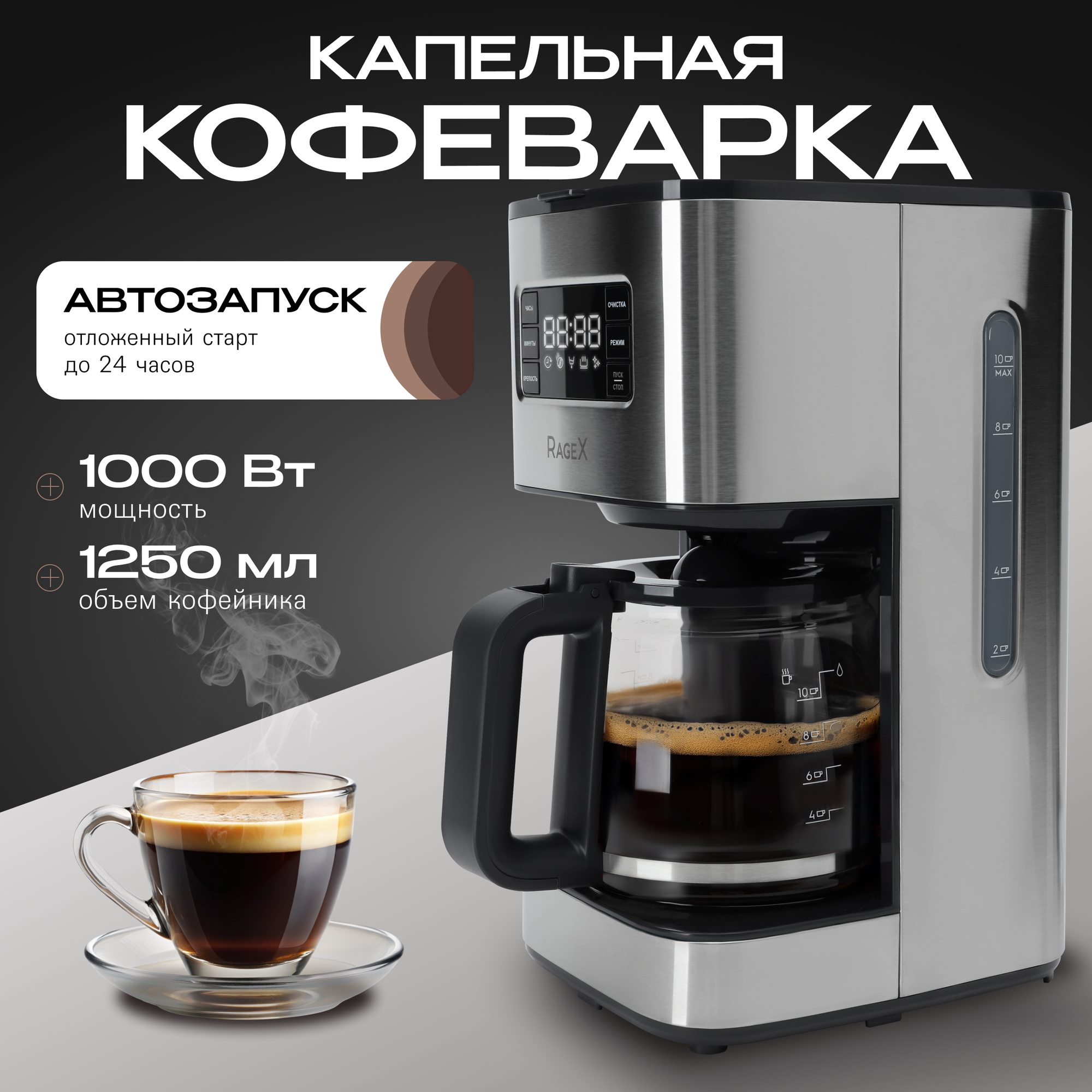 Капельная кофеварка, объем 1.38 литра, мощность 1000 Вт, серебристая информация: