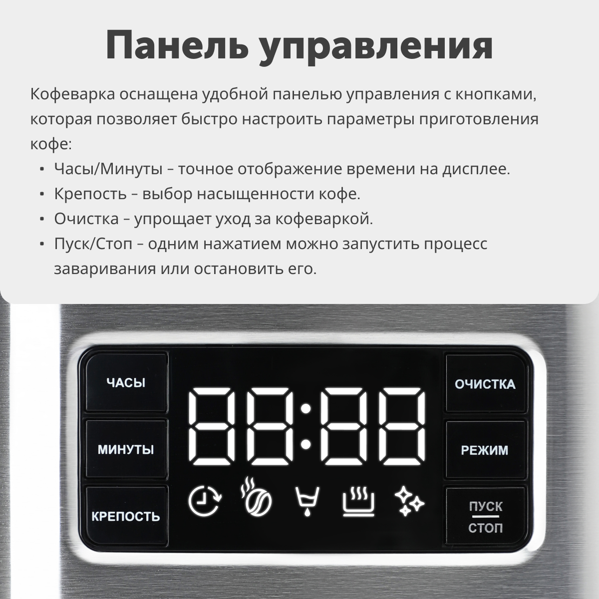 10 цен на Капельная кофеварка, объем 1.38 литра, мощность 1000 Вт, серебристая