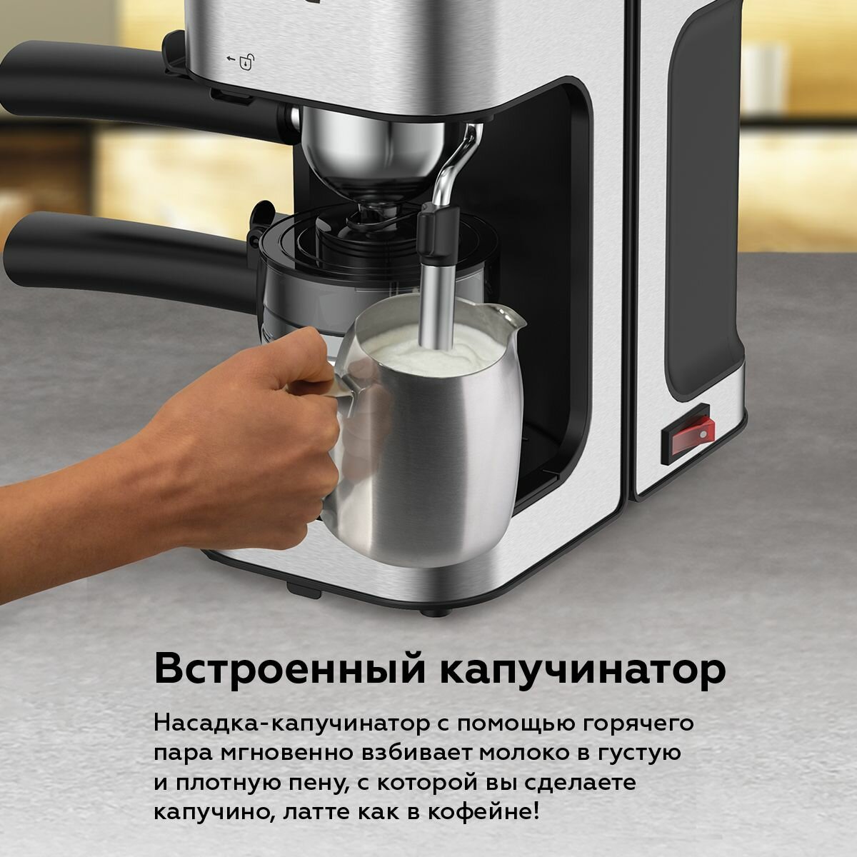 Кофеварка капсульная 3в1 BQ CM3003 Черно-серебристая с капучинатором
