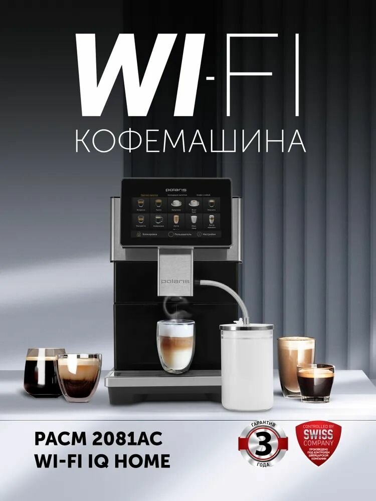 Кофемашина автоматическая PACM 2081AC WIFI IQ Home зерновая со встроенной кофемолкой / Черный информация: