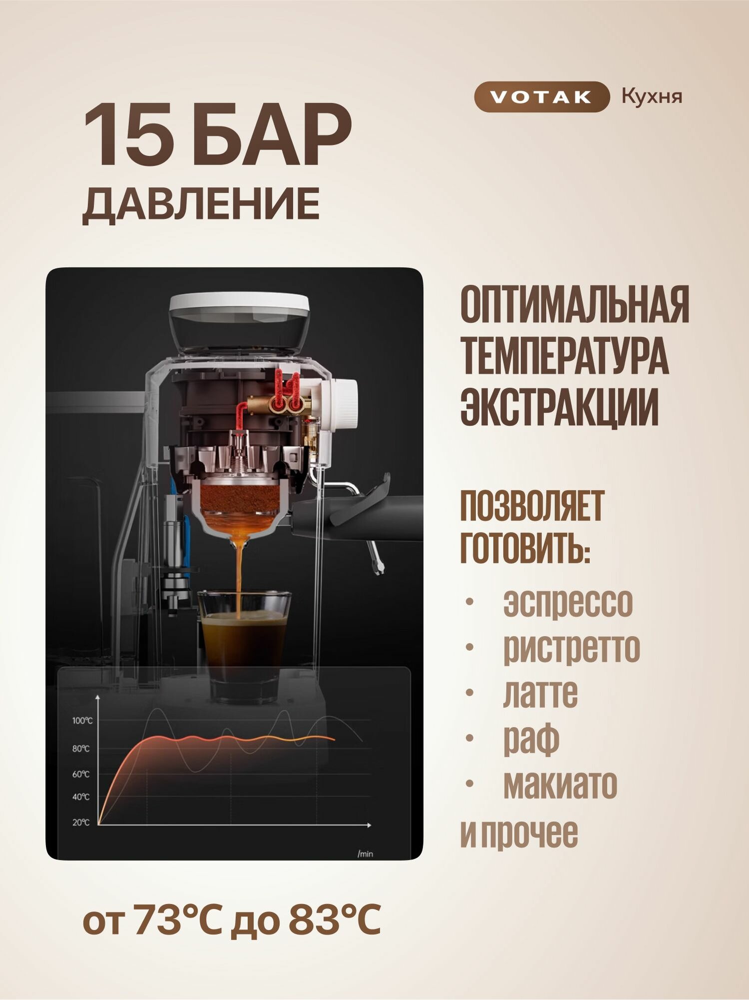 Отзывы на Кофемашина рожковая с кофемолкой, 15 бар, емкость резервуара 1 л, 1300W