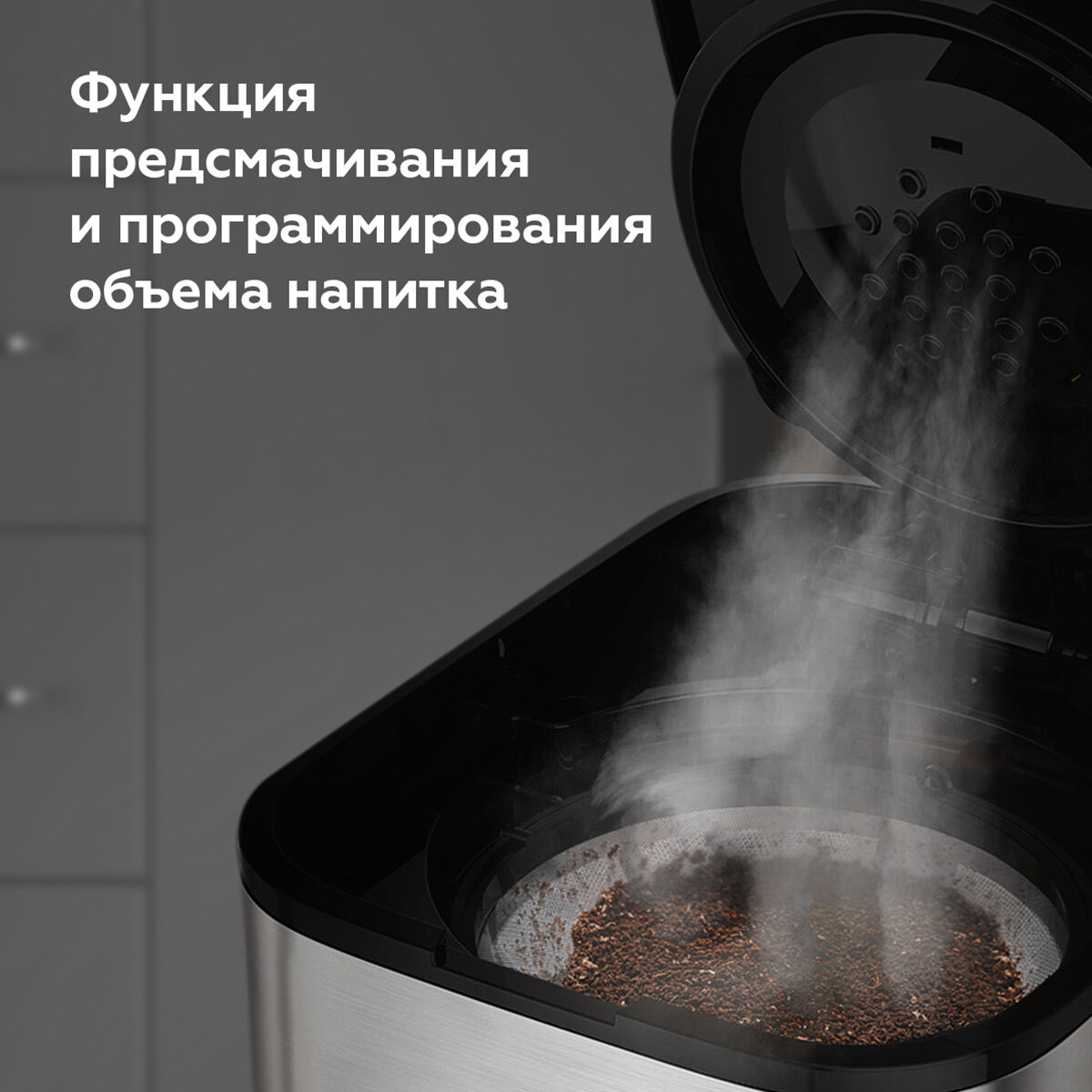 Капельная кофеварка со встроенной кофемолкой BQ CM7002 Черно-серебристая / 800 Вт / 1.25л