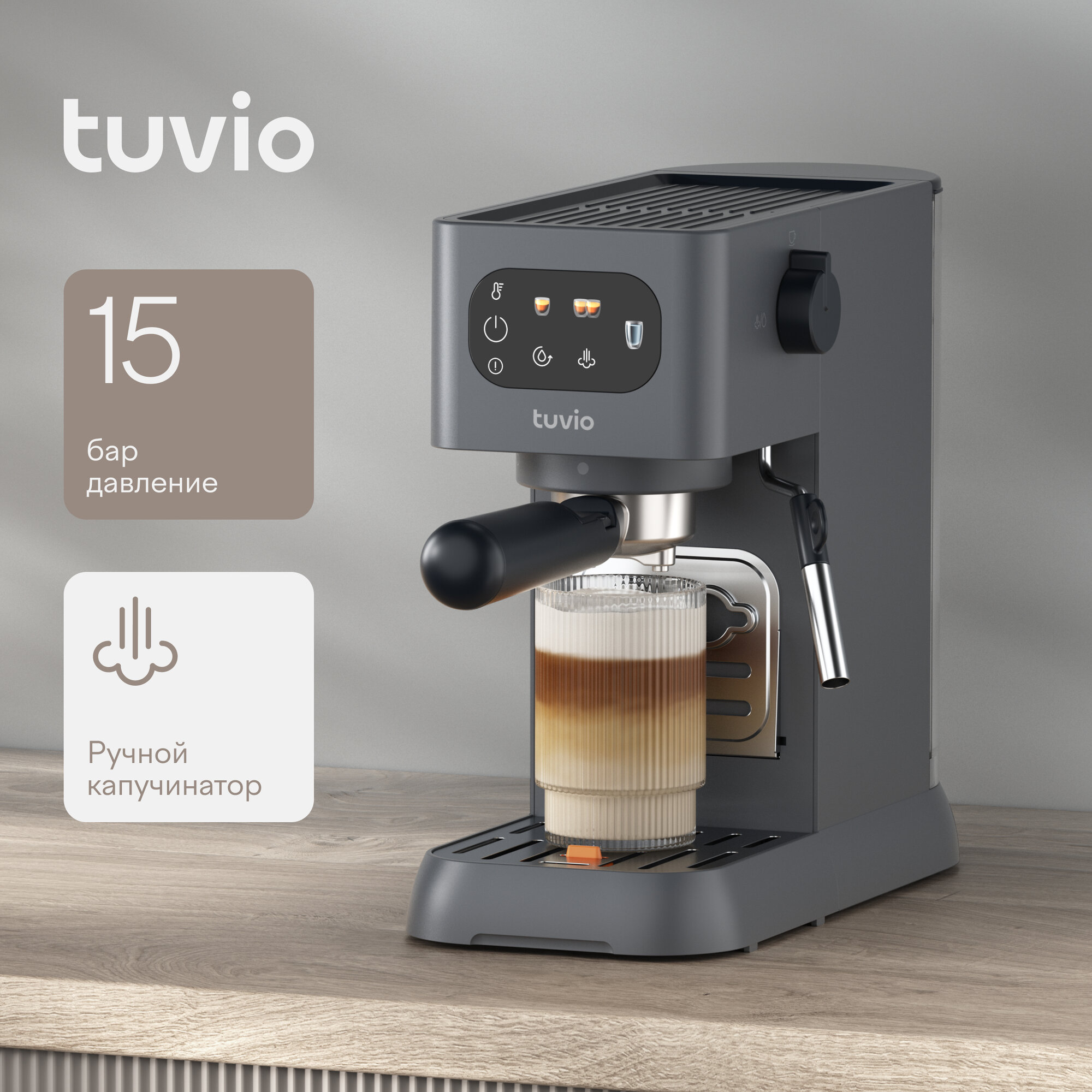 Кофеварка рожковая Tuvio TCM08EM, черный информация: