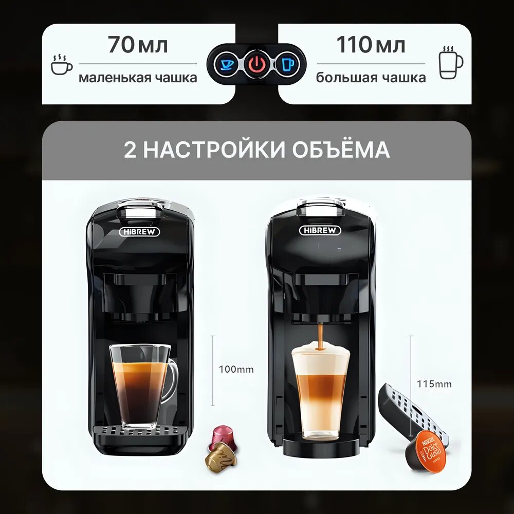Кофемашина капсульная 4 в 1 NESPRESSO/DOLCEGUSTO/чалды/молотый HIBREW H1A, 1450 Вт, объем 0,7 л, черная