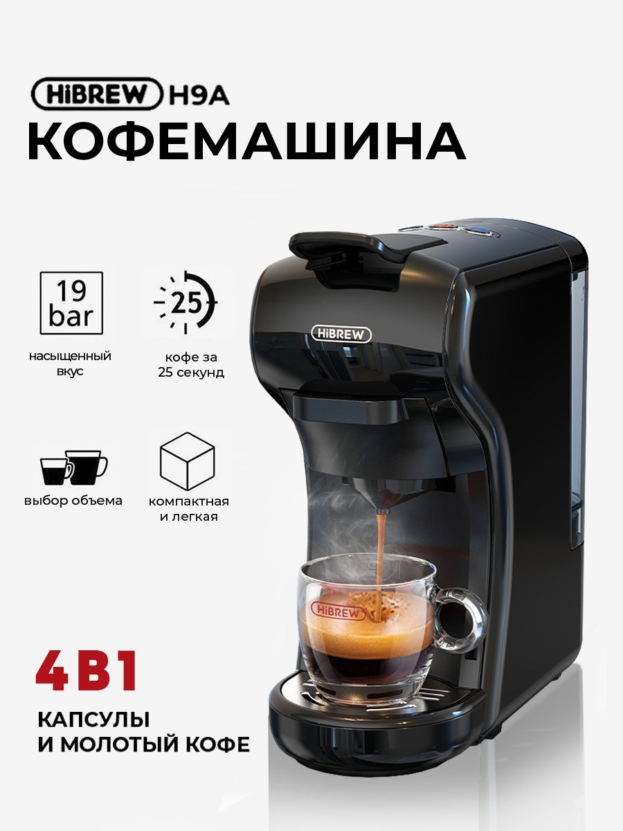 10 цен на Кофемашина капсульная Hibrew Global H9A черный, давление 19 Бар, эспрессо/ капучино/ американо