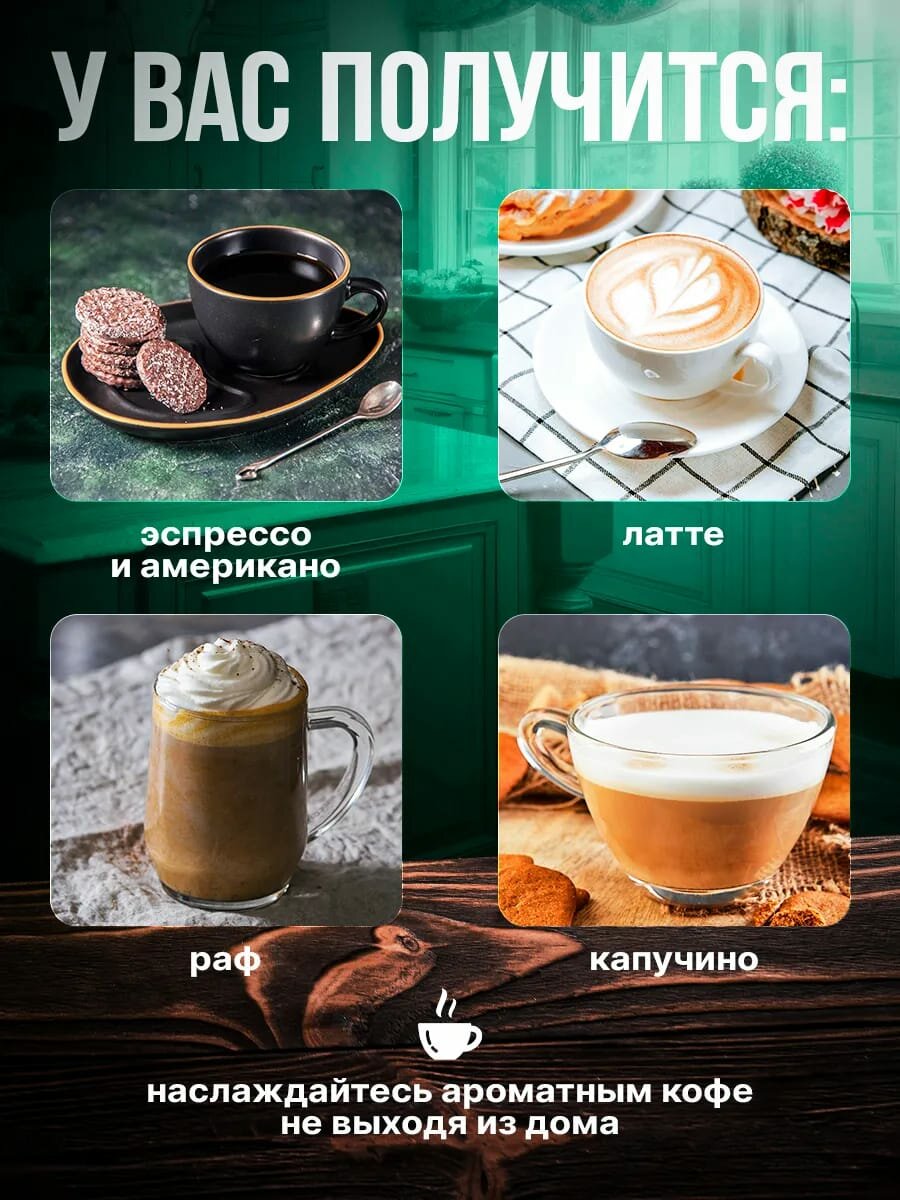 | Тип напитка | американо / капучино / латте / латте макиато / лунго / макиато / эспрессо |