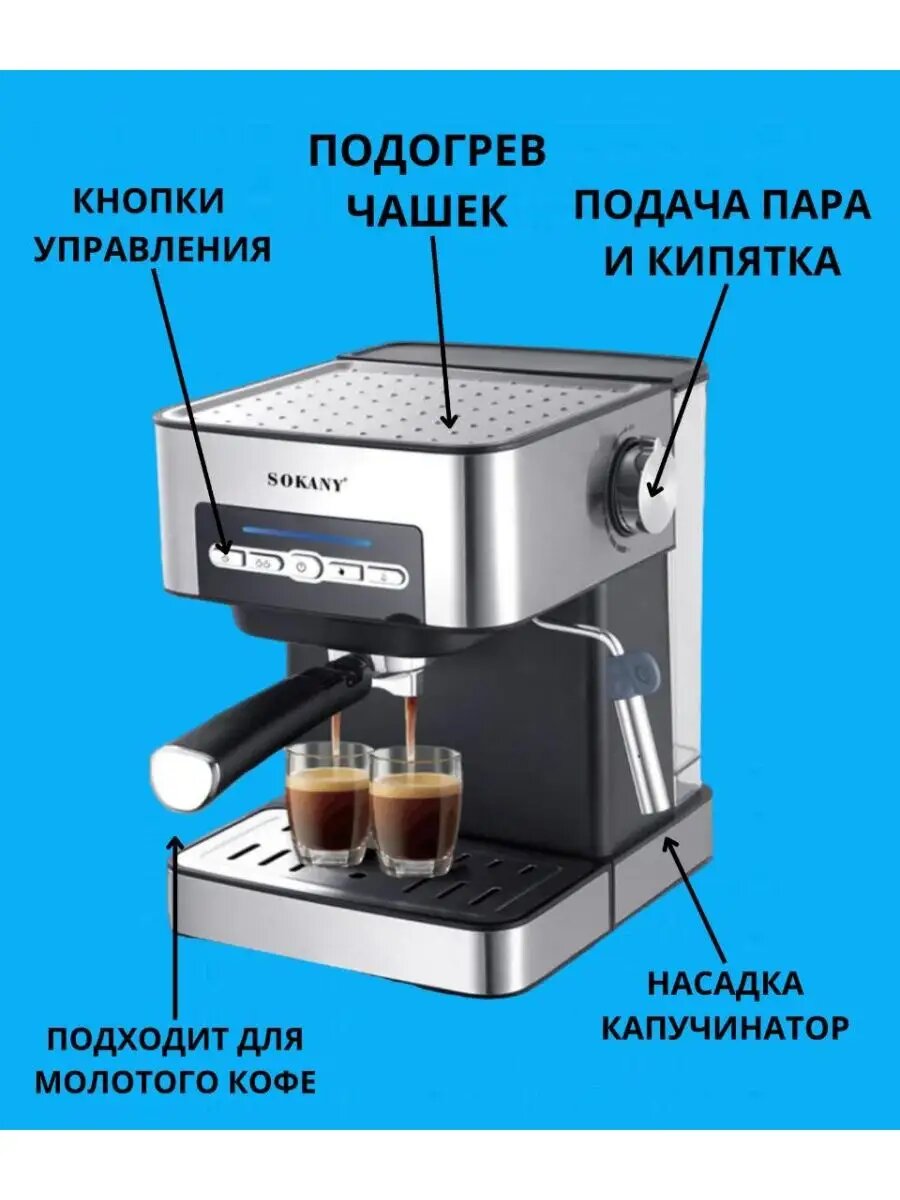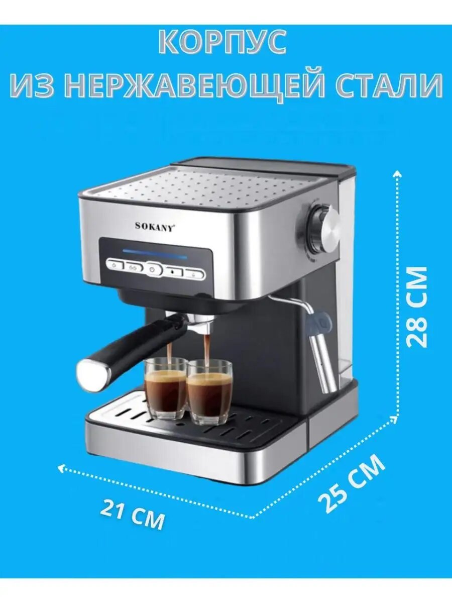 Отзывы на Кофеварка, кофемашина рожковая Sokany, автоподогрев, 1050 Вт, 15 бар