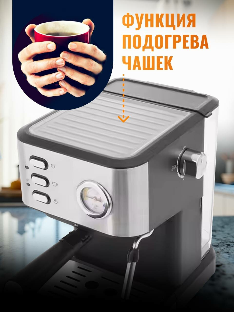 Кофеварка, кофемашина рожковая Sokany, автоподогрев, 1050 Вт, 15 бар