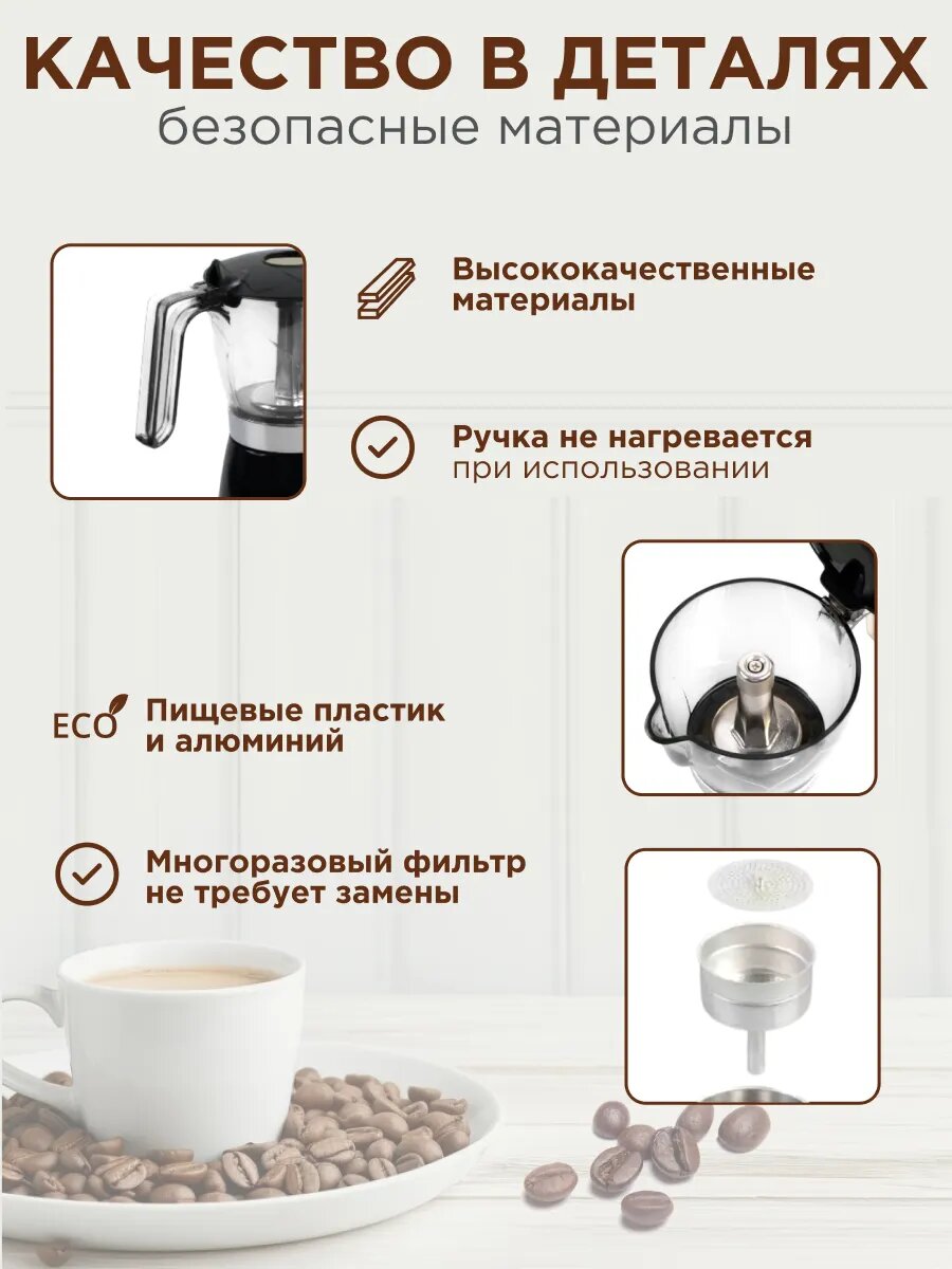 10 цен на Кофеварка гейзерная электрическая 300 мл от сети