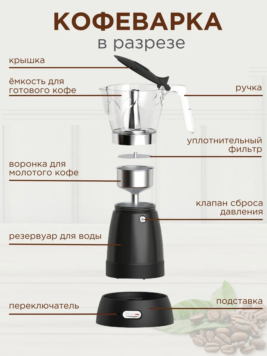 Кофеварка гейзерная электрическая 300 мл от сети информация: