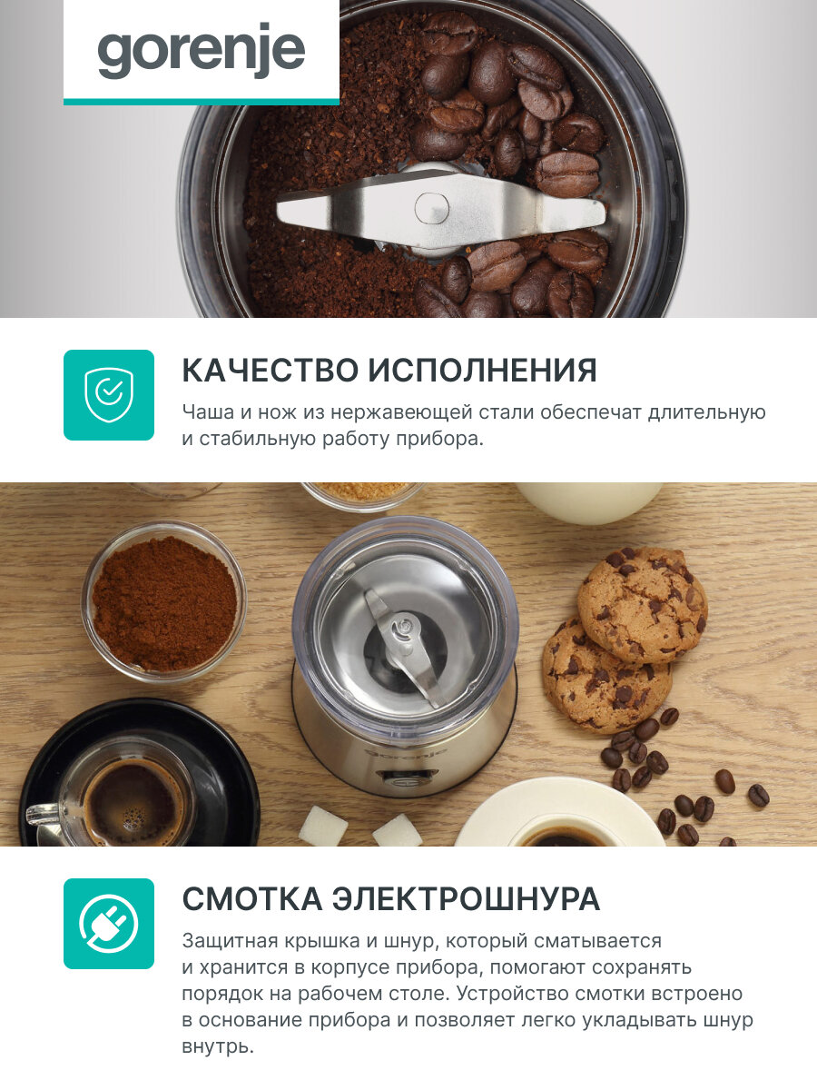 10 цен на Кофемолка Gorenje SMK150Е, серебристый, нержавеющая сталь, одинарный нож