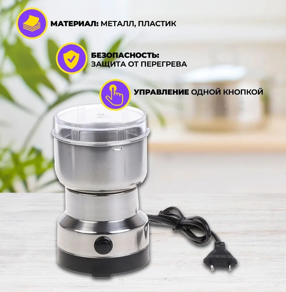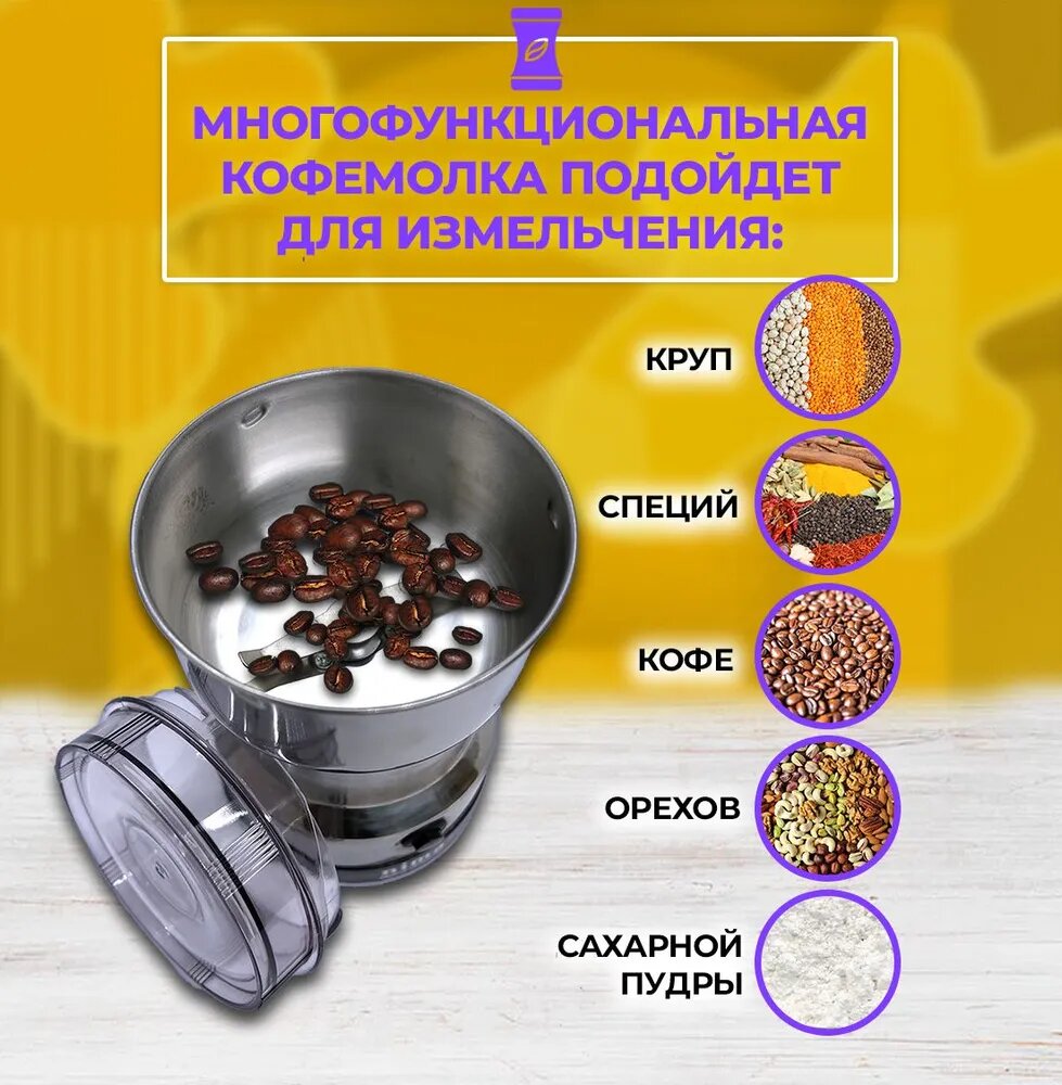 Электрическая кофемолка/ измельчитель/ 500 Вт Кофемолка электрическая для специй и кофе, многофункциональная информация:
