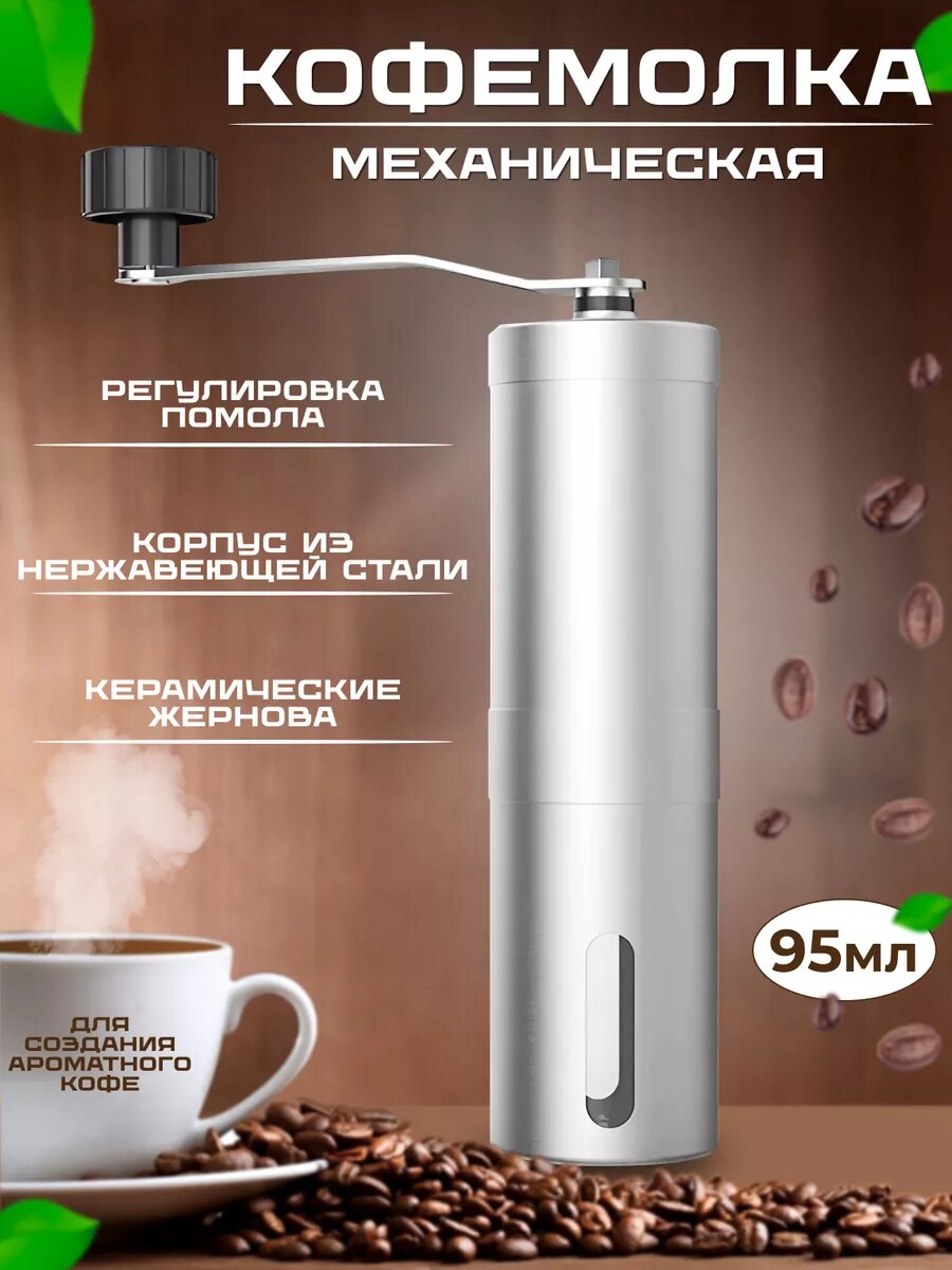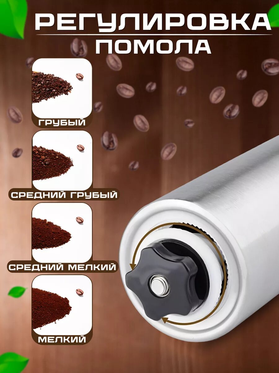 Отзывы на Кофемолка механическая , нержавеющая сталь, съёмная ручка, серебристая, 20см