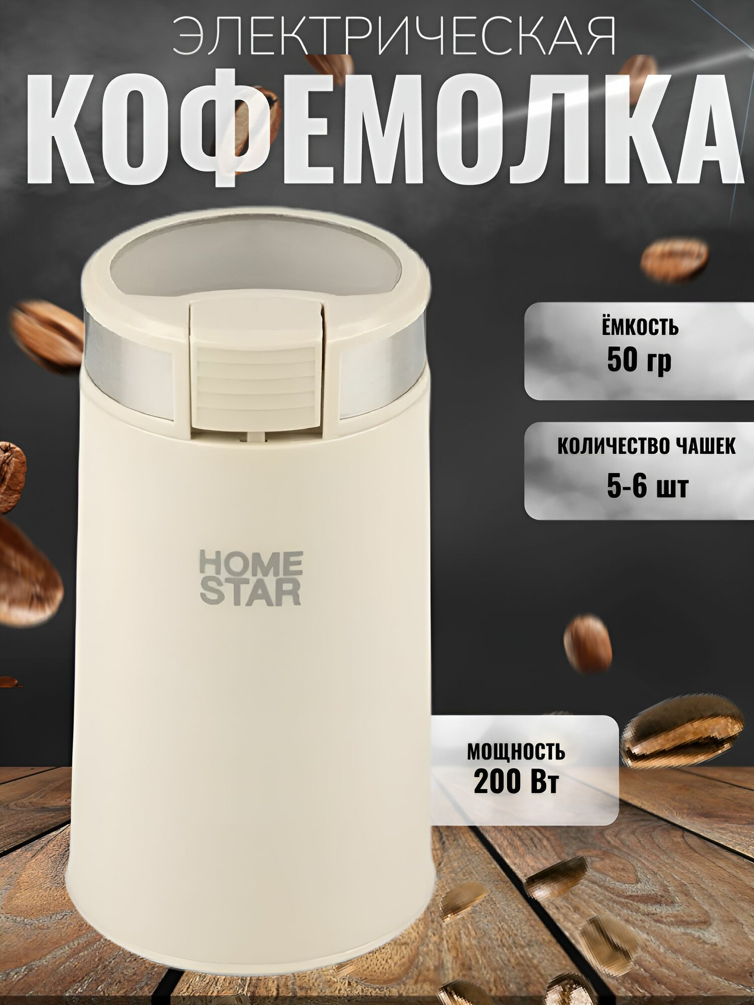 Кофемолка HomeStar HS-2035 бежевая 200 Вт информация: