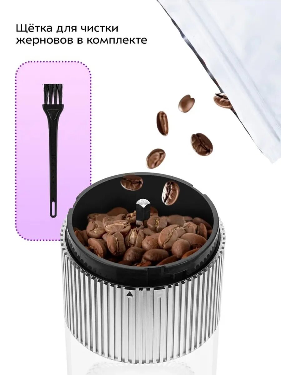 10 цен на Кофемолка Kitfort КТ-7485, беспроводная, жерновая, мощность 13Вт, с регулировкой помола, серая