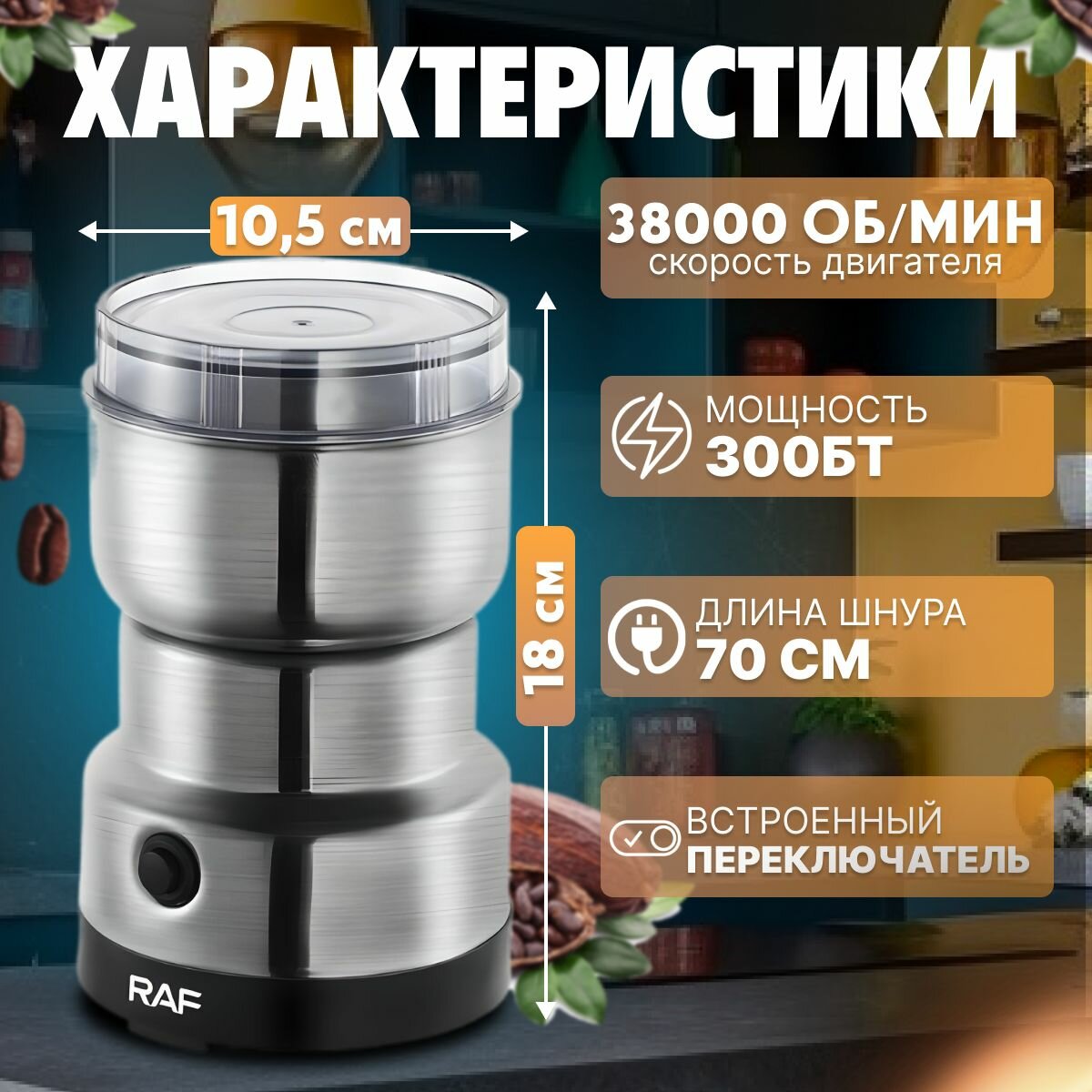 Кофемолка электрическая, измельчитель для специй, нержавеющая сталь, 300 Вт информация: