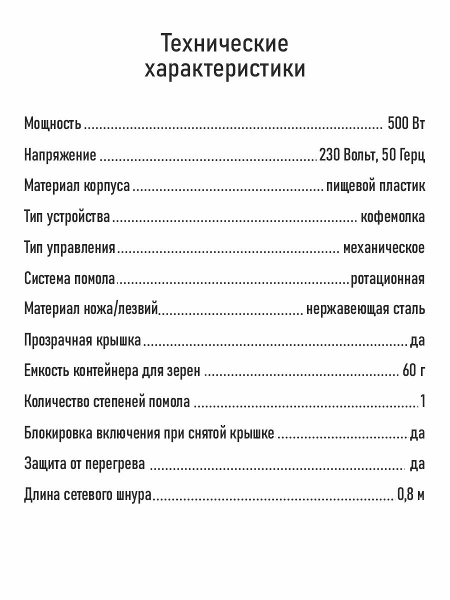 | Тип кофемолки | Электрическая, импульсная, ножевая |