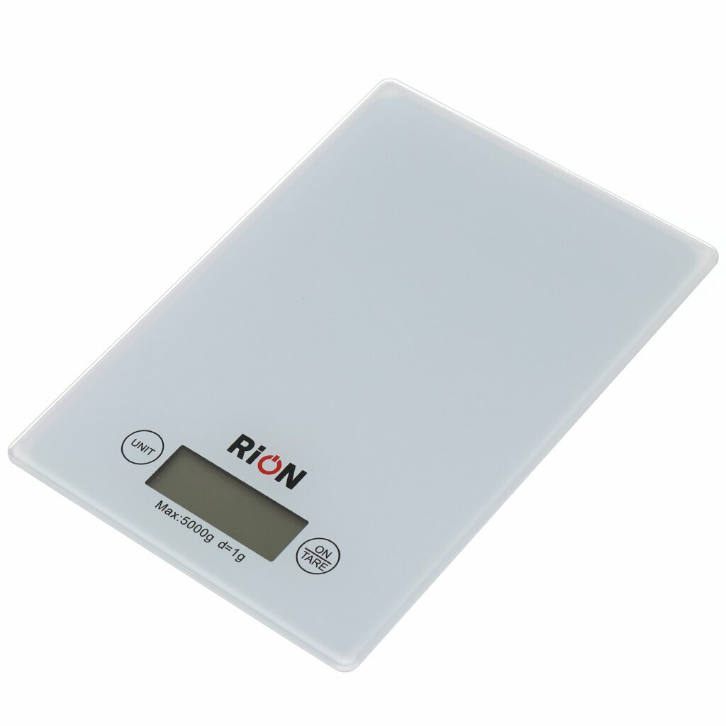 Весы кухонные электронные, стекло закаленное, Rion, платформа, точность 1 г, до 5 кг, LCD-дисплей, белые, BB-K08