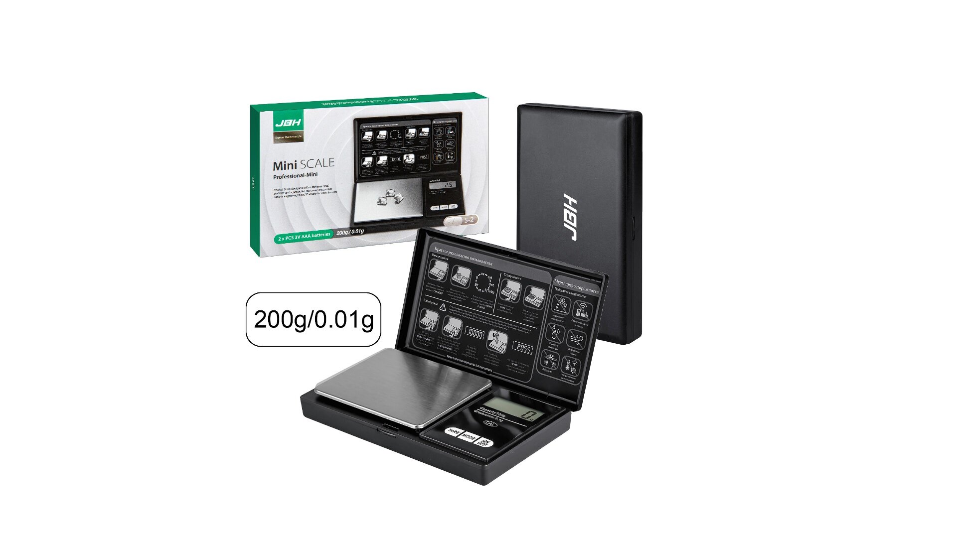 Электронные профессиональные карманные весы JBH S-2, max 200 г./Точность 0,01 г. информация:
