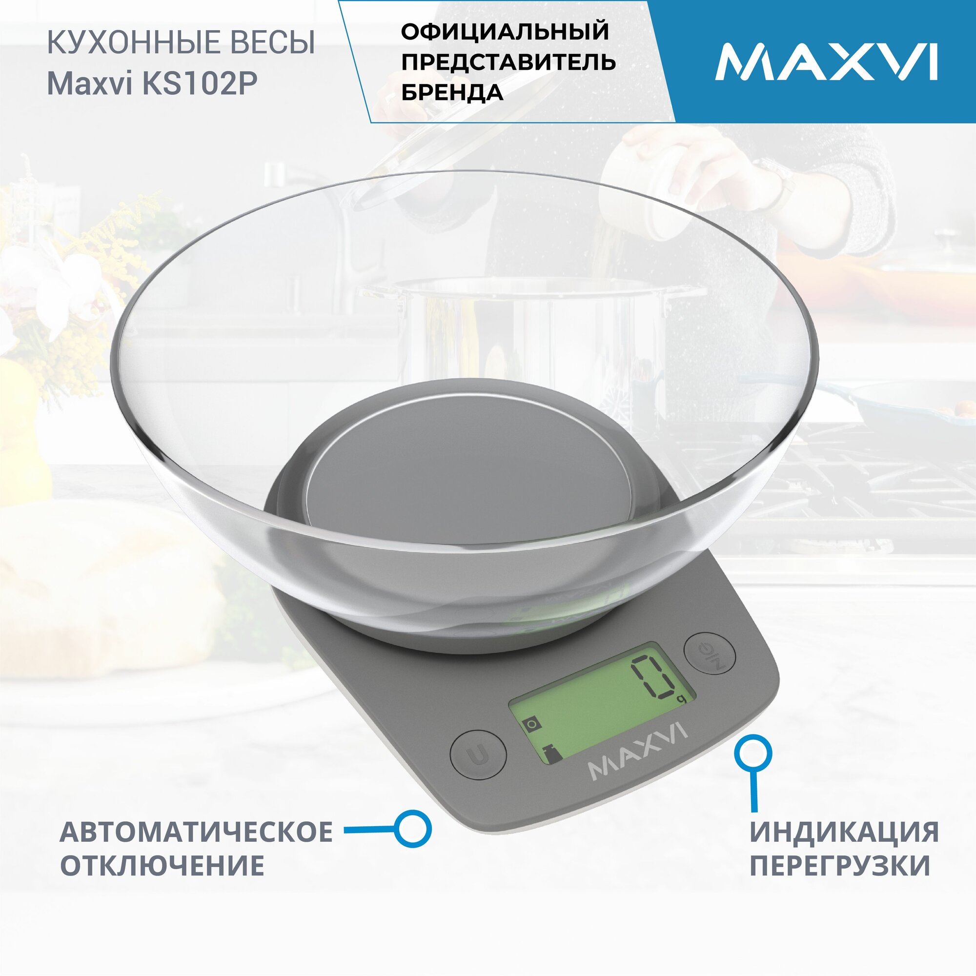 10 цен на Весы кухонные с чашей Maxvi KS102P серые