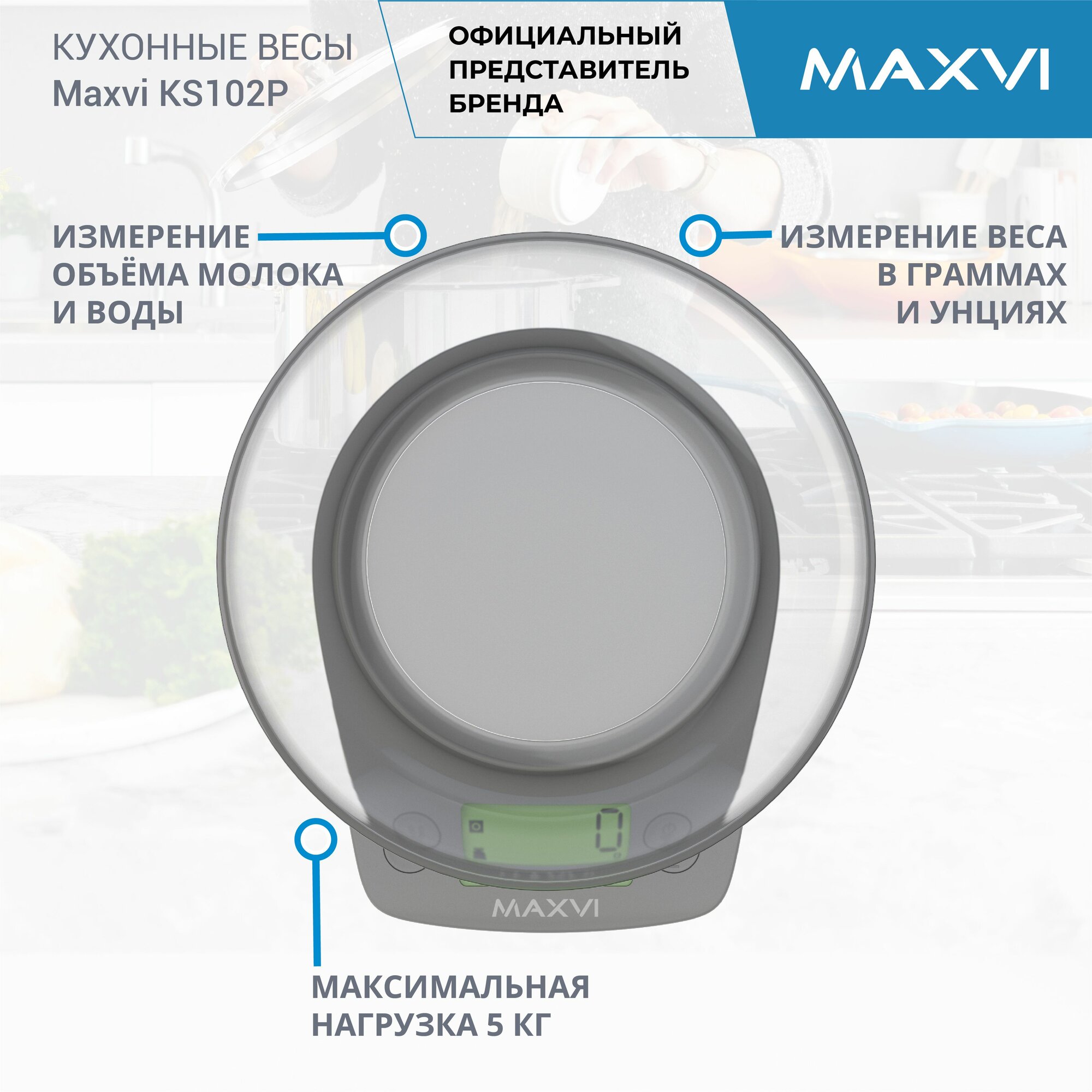 Весы кухонные с чашей Maxvi KS102P серые информация: