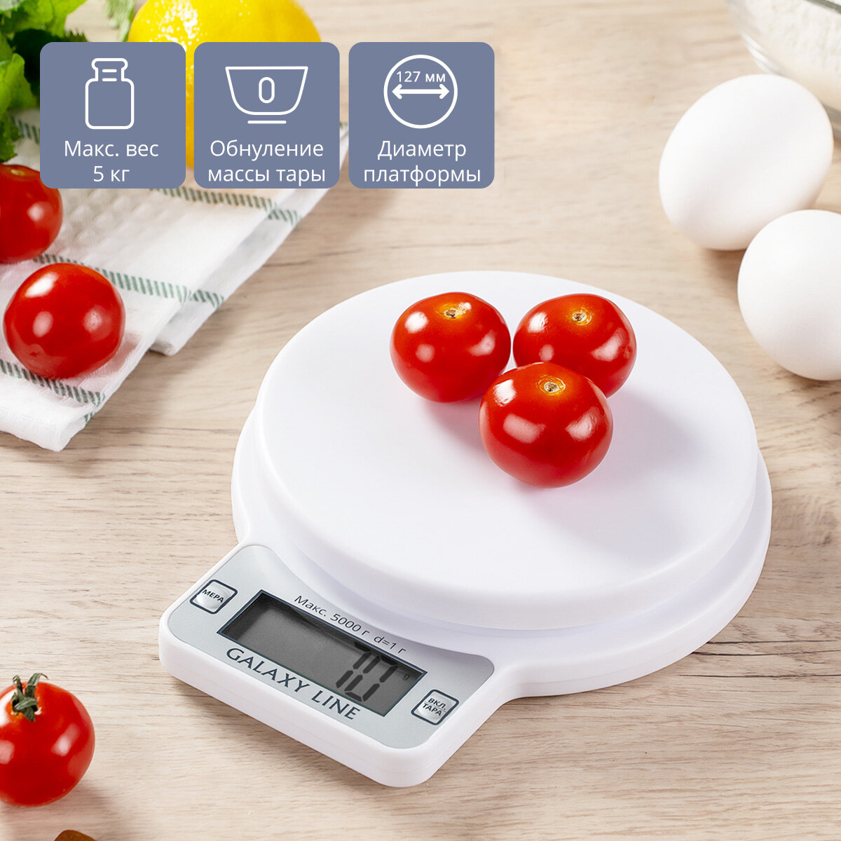 10 цен на Электронные кухонные весы GALAXY LINE GL2814, белый, пластик, до 5кг, 220г