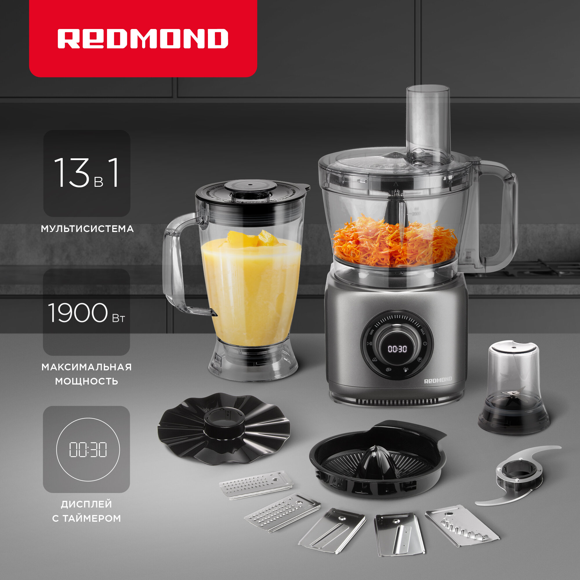 10 цен на Кухонный комбайн REDMOND FP607, набор 13 насадок: миксер, блендер, измельчитель, овощерезку, соковыжималку и кофемолку