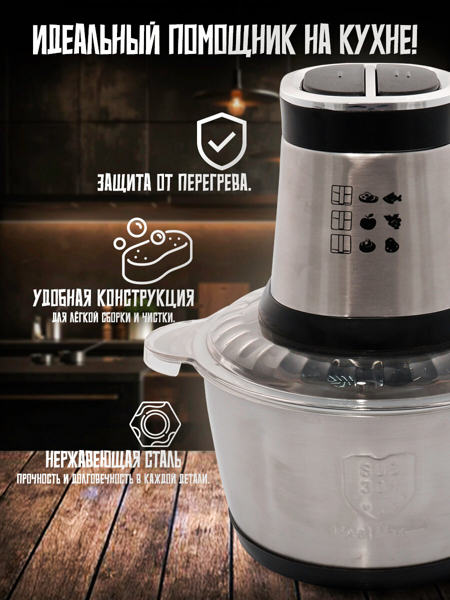 Измельчитель. Электрический из нержавеющей стали, 1500вт, 2 литра, для твердых и мягких продуктов информация:
